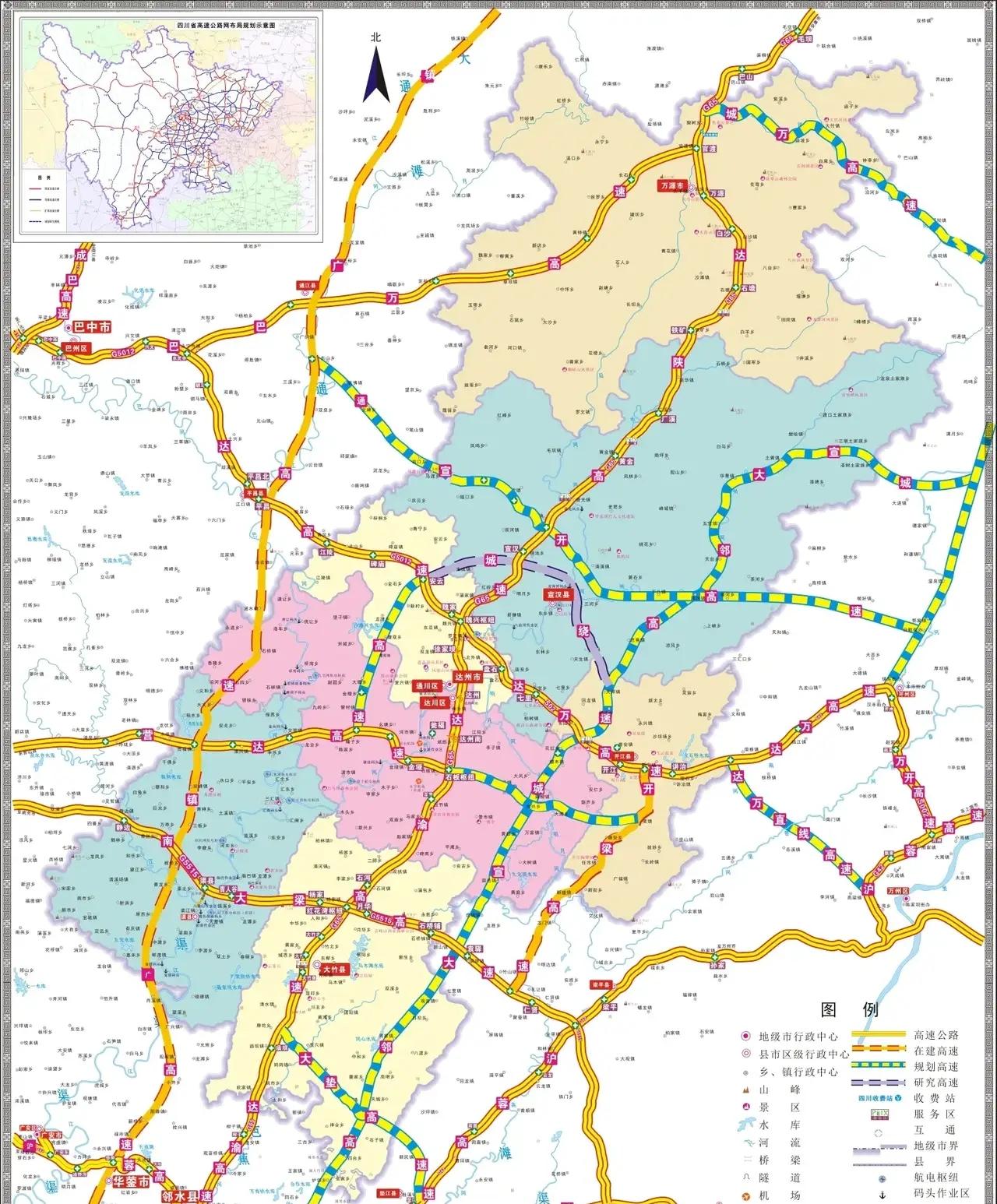 达州的绕城高速区划一下子就是大手笔,其完整的绕城高速把市区、宣汉城区、开江县全部纳入其中,更是把包茂高速、恩广高速、营达高速和城宣大邻高速全部串联一起。以后达州的高速路网遍布全市域,均衡发展为经济添砖加瓦,形成了四横四纵为主的高速路网,还有如巴万、城万、大垫等高速填充其区域,除了北部山区的万源相对差点,其他区县都是很均衡的高速路网。相比较隔壁的巴中和南充达州的路网只会越来越方便快捷。