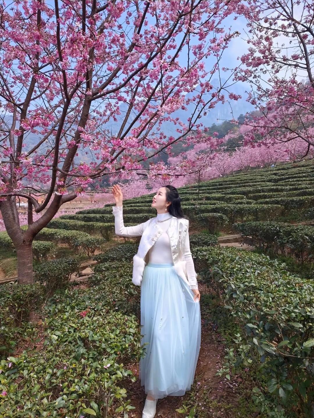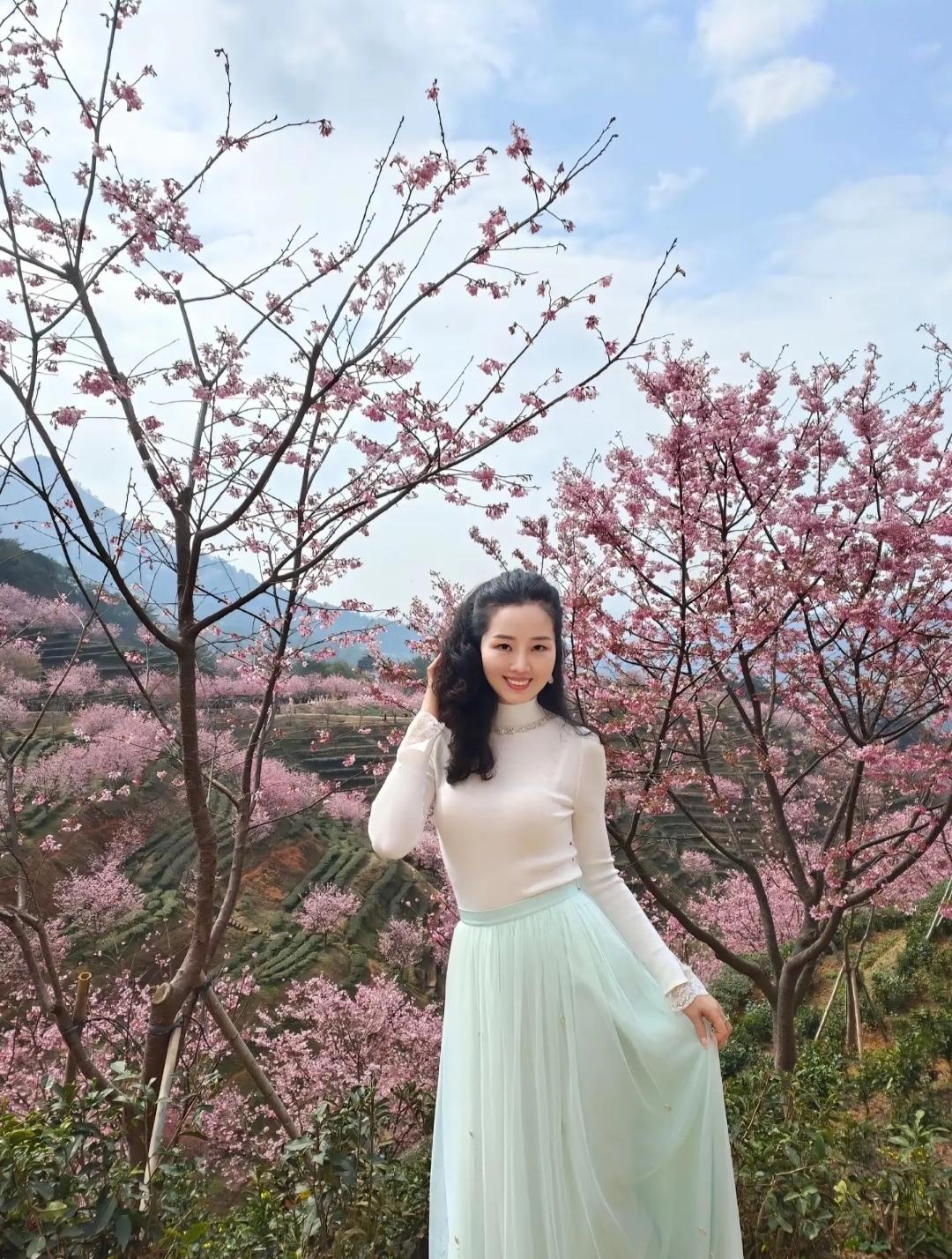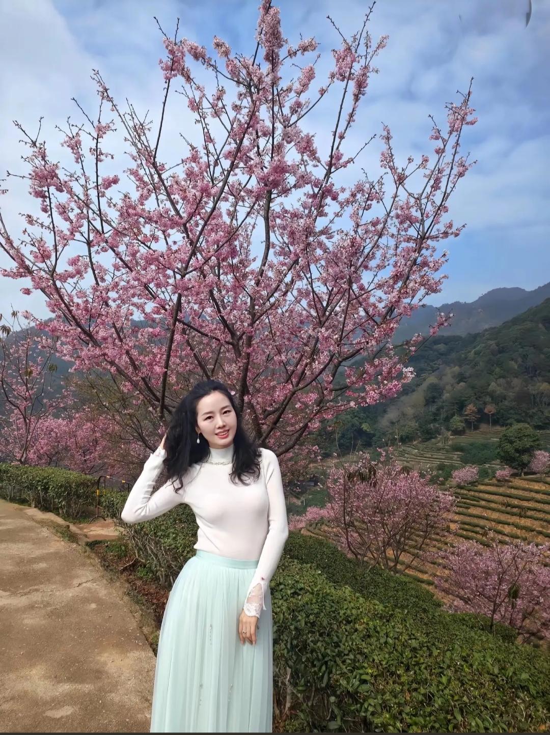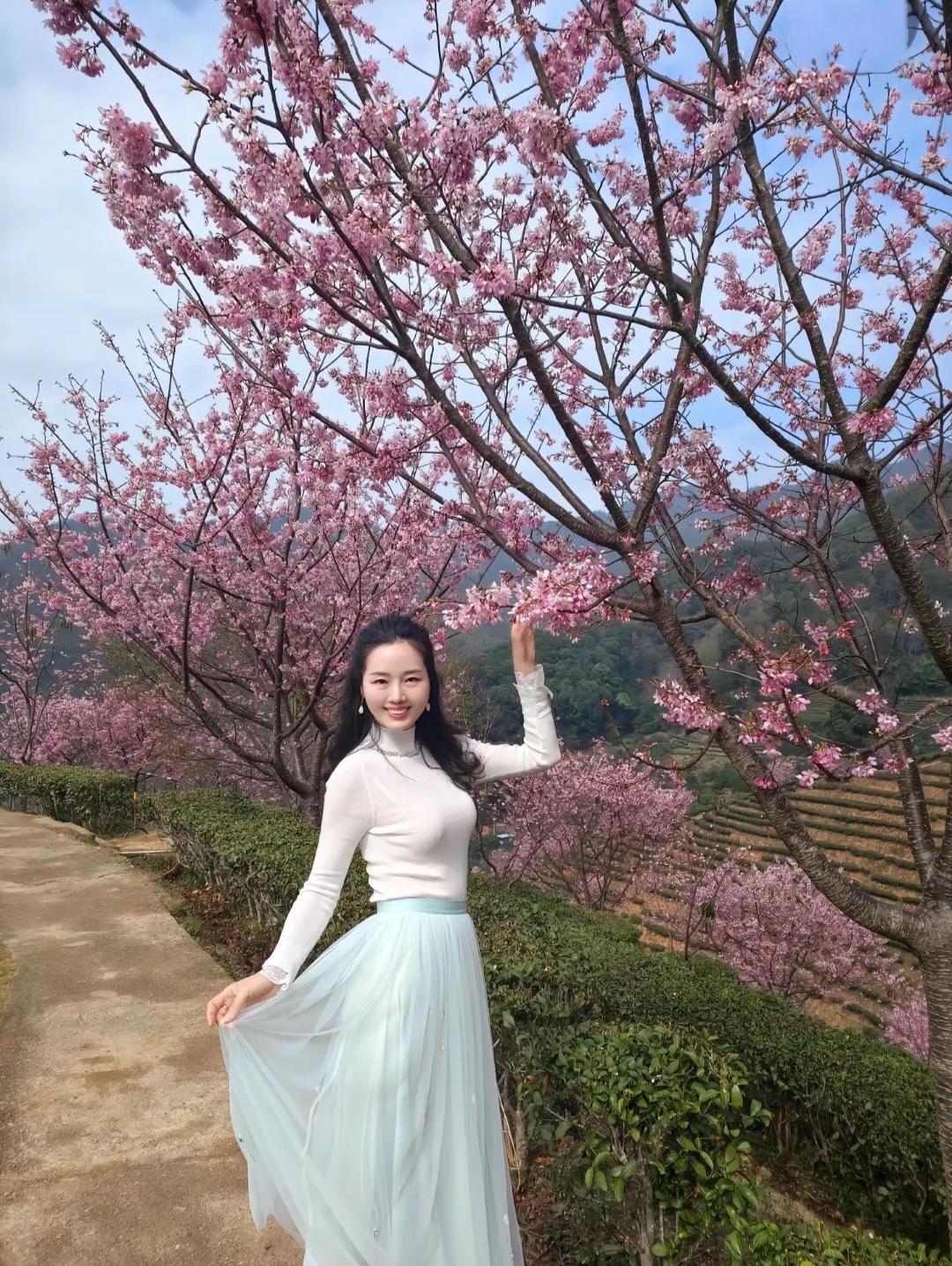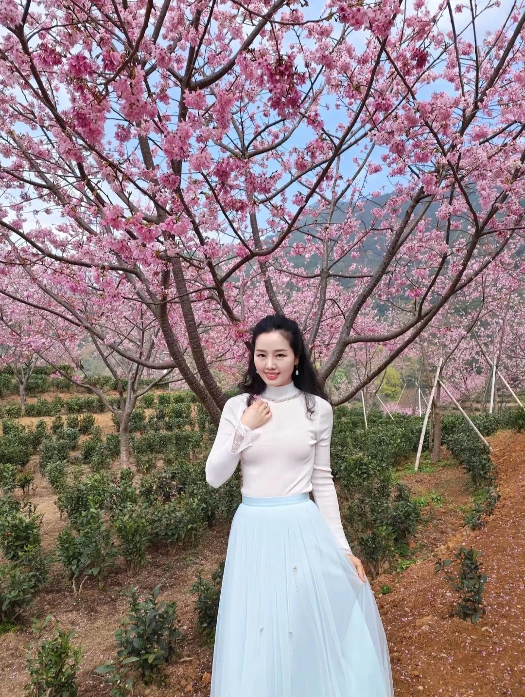樱花树下,浅笑嫣然,春意盎然。