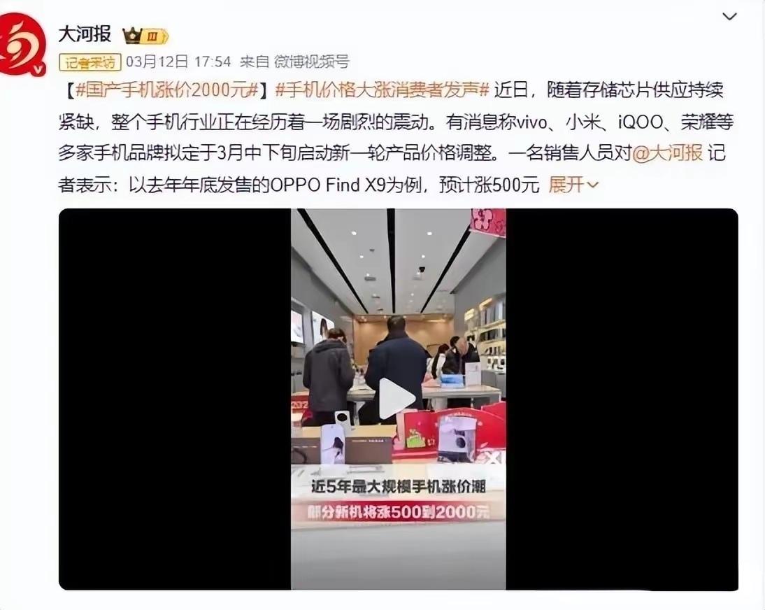 “本来想换手机,看到涨价通知,默默把旧手机擦了擦,觉得还能再战两年。” 这话现在听起来像个段子,但放到2026年3月的今天,真就是大多数人的真实写照。 往年这时候,数码圈的热闹应该是新机扎堆发布、老款疯狂跳水。结果今年画风突变,大家等来的不是降价狂欢,而是一张张调价公告。OPPO先扛不住了,3月10号直接官宣:从3月16日起,一加和部分OPPO在售机型价格上调。理由给得也很实在——关键零部件成本扛不住了,尤其是高速存储,涨得太凶。 我当时看到这条消息,还以为是OPPO自个儿的事。结果没过两天,渠道商那边就漏了风声:vivo、小米、iQOO、荣耀,全都在排队调价。这一下就明白了,不是哪一家撑不住,是整个行业集体“渡劫”。 说到这,肯定有人要骂:厂商吃相太难看了,又想割韭菜。 实话跟你说,这次真冤枉他们了。手机厂商现在也是哑巴吃黄连——真正的“幕后黑手”,是上游那小小的存储芯片。 现在的存储市场已经涨疯了。进入2026年,全球内存市场单季度涨幅直奔80%到90%,价格直接刷新了近年来的峰值。像DDR4这种普通颗粒,从去年低点的3.2美元一路飙到15美元,累计涨幅快400%。什么意思?手机厂商之前花3块钱能买的东西,现在得花15块,成本翻了三倍多。 更扎心的是,在千元机里,存储成本能占到整机成本的将近30%;哪怕是中端机,也得占两成左右。这就好比开饭馆,别的菜价没动,唯独大米从两块钱一斤涨到了十块钱,你卖蛋炒饭能不涨价吗?硬扛着不涨价,卖一台就亏一台,谁顶得住? 那问题来了,好好的存储芯片,怎么说涨就涨? 答案可能让你有点意外——是AI惹的祸。 你没听错,就是那个天天在新闻里写诗、画图、编代码的人工智能。AI大模型训练、云端推理、算力中心建设,这些高科技玩意儿对内存和闪存的消耗,是普通手机的几十倍甚至上百倍。尤其是HBM这种专门伺候AI服务器的高端内存,利润高得吓人,存储大厂们自然把产能优先倾斜给AI服务器,消费电子这边能分到的份额就少了。 这就形成了一种“抢食”局面:AI在疯狂吃肉,手机这边连汤都快喝不上了。供给少了,价格自然飙升,手机厂商拿不到低价芯片,最后只能把压力传导给我们这些普通消费者。 其实去年10月,雷军就打过“预防针”,说内存涨价幅度超出预期,希望大家理解。当时还有人说这是托词,现在回头看,那是大实话。 更让人担心的是,眼下的涨价可能只是个开始。接下来很可能会陷入一个死循环:成本涨→手机涨价→大家不买了→销量下滑→每台手机的研发、模具、渠道成本反而更高→为了不亏本,还得继续涨价。到最后,厂商卖得累,消费者买得贵,谁都难受。 据业内人士预测,这波涨价潮很可能贯穿整个2026年。所以,如果你不是急等着换机,确实可以把旧手机再擦擦,毕竟现在的手机性能普遍过剩,多用两年完全没问题。 当然,如果你刚需入手,也不必太焦虑。记得留好发票,看清楚配置,别被不良商家浑水摸鱼。毕竟咱们的钱都不是大风刮来的。 (本文综合自21世纪经济报道、澎湃新闻及公开市场数据)