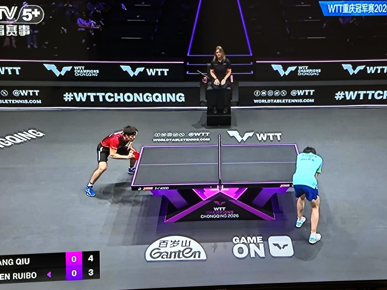 终于可以收看到WTT重庆冠军赛男单四分之一决赛的电视直播了! 这场的对阵双方是