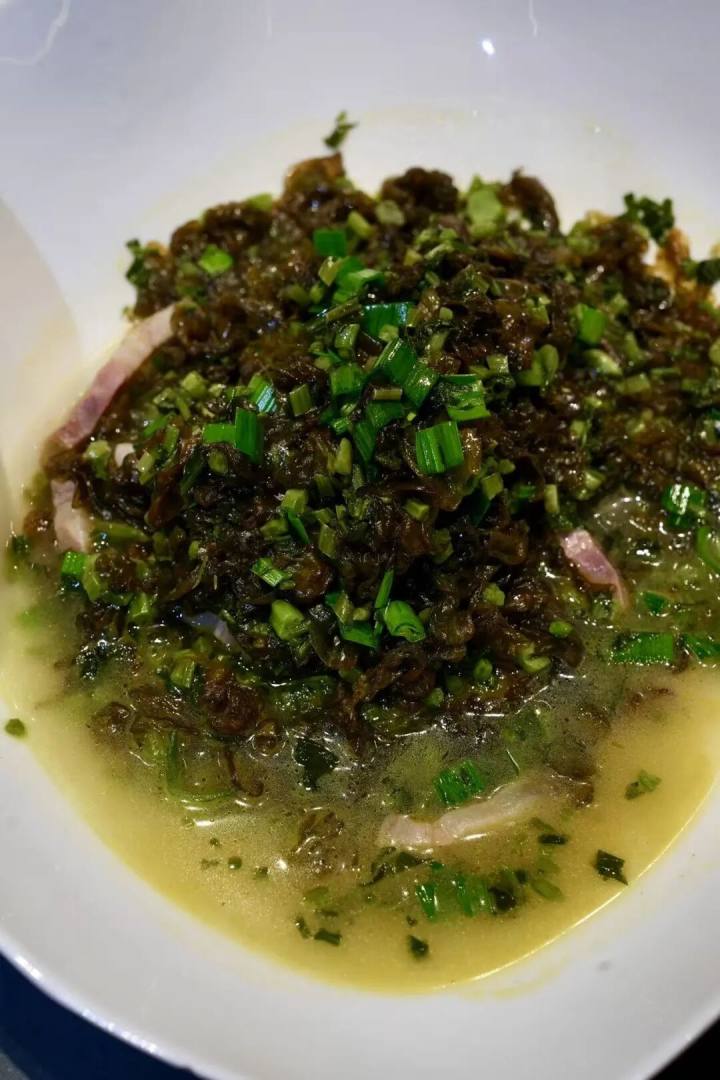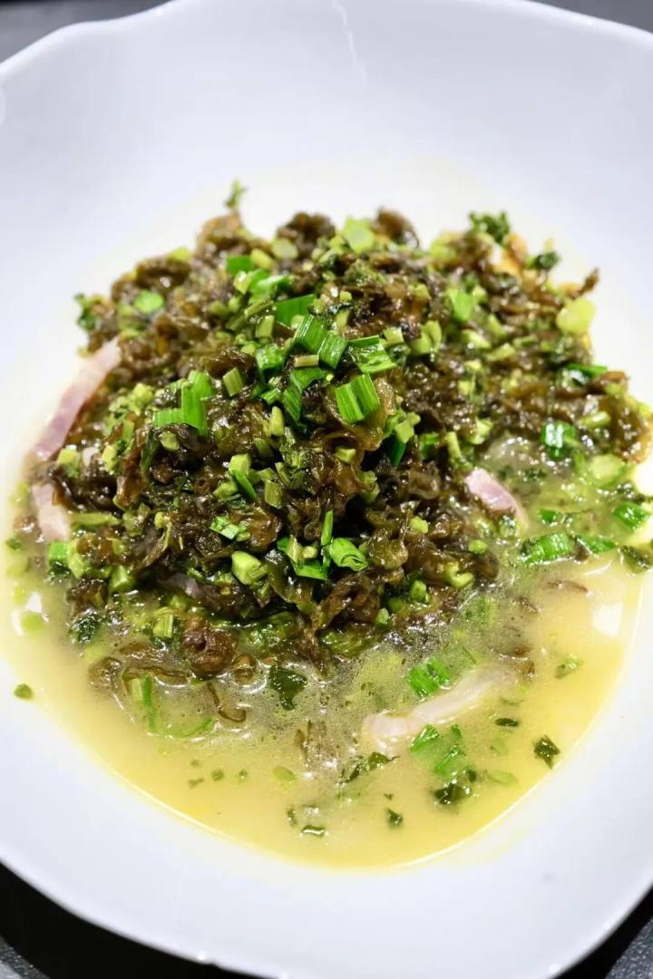 地衣与雪菜天然“有一腿”,最通俗做法,就是放点辣椒、蒜姜和适量雪菜,以猪油爆炒,柔滑爽嫩,偷得春鲜。