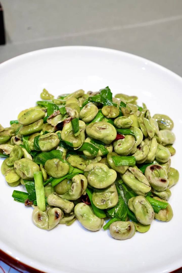 蚕豆与韭菜同烹,所谓春韭晚菘,其实蚕豆还没到季节,要到五月份,本地蚕豆才会上,眼下都是南方来豆。