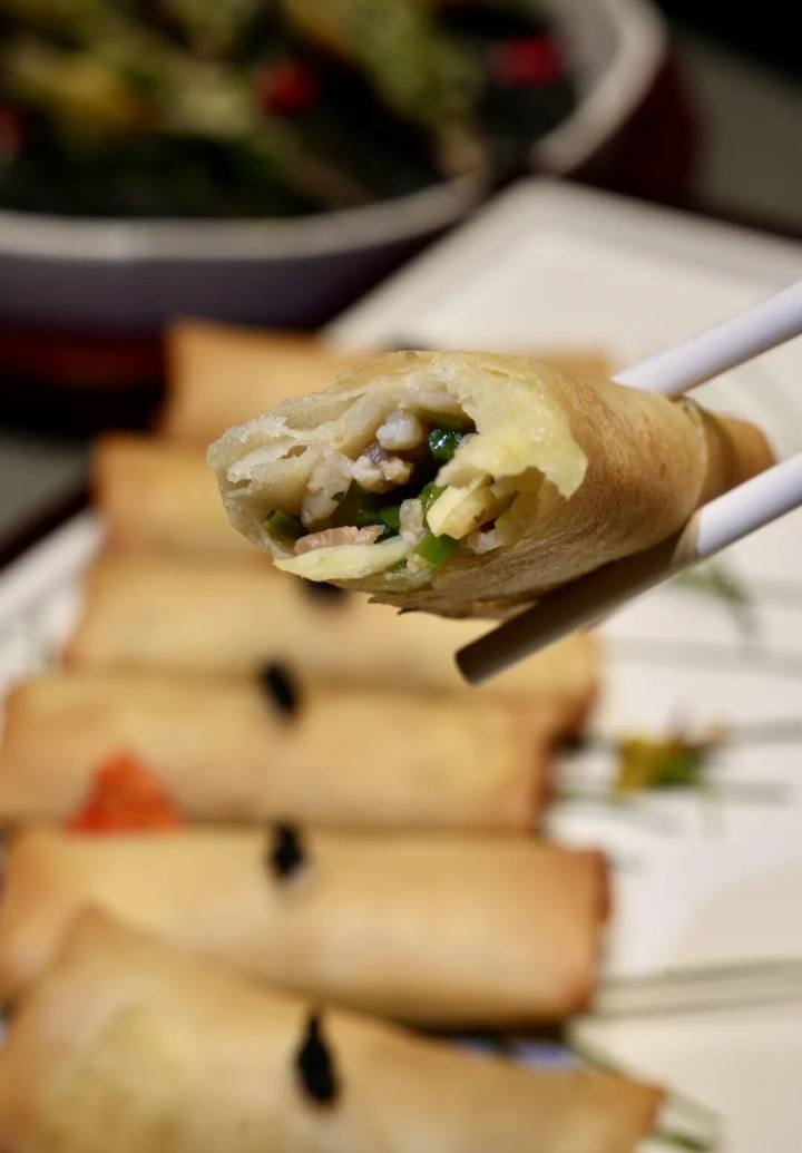 荠菜春卷是经典搭配了,春卷重在空气感,酥脆松薄,馅里再加点香干笋丁,更春天。