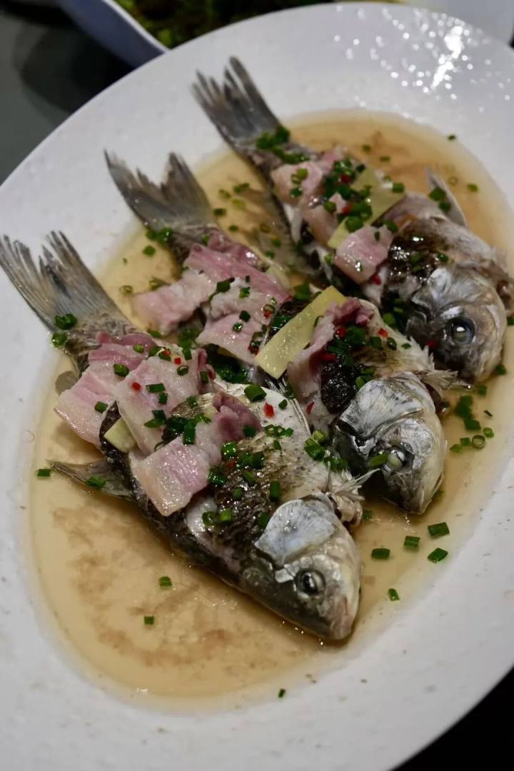 巴掌大的鲫鱼,三条凑一盘,改刀三切,间以咸肉笋片,清蒸之,一筷子夹走月牙肉,气死同桌,鲫鱼真不愧淡水鱼之最。私以为,远甚鳜鱼。
