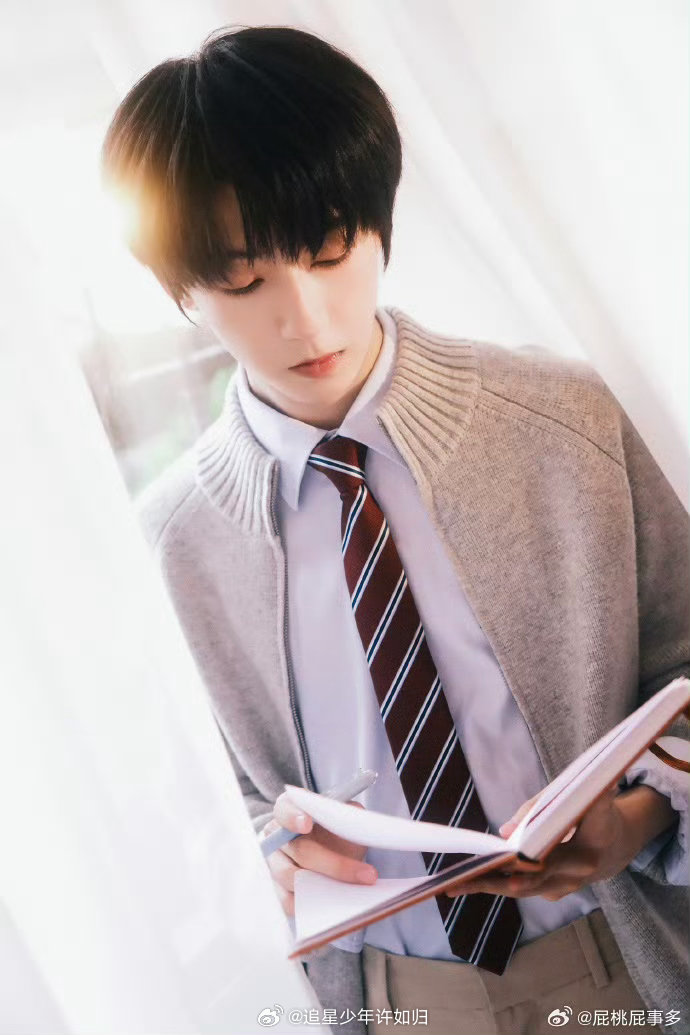杨博文少年感溢出屏幕了 杨博文这次确实把少年感拉满了,毛衣领带卡其裤,干净清爽又带着点书卷气。确实是篮球学长本人,剧赶紧播吧。