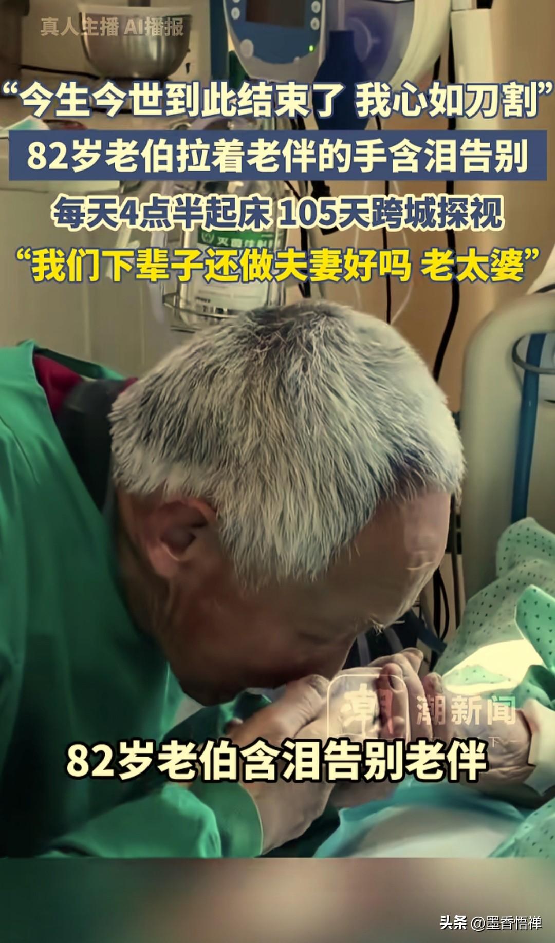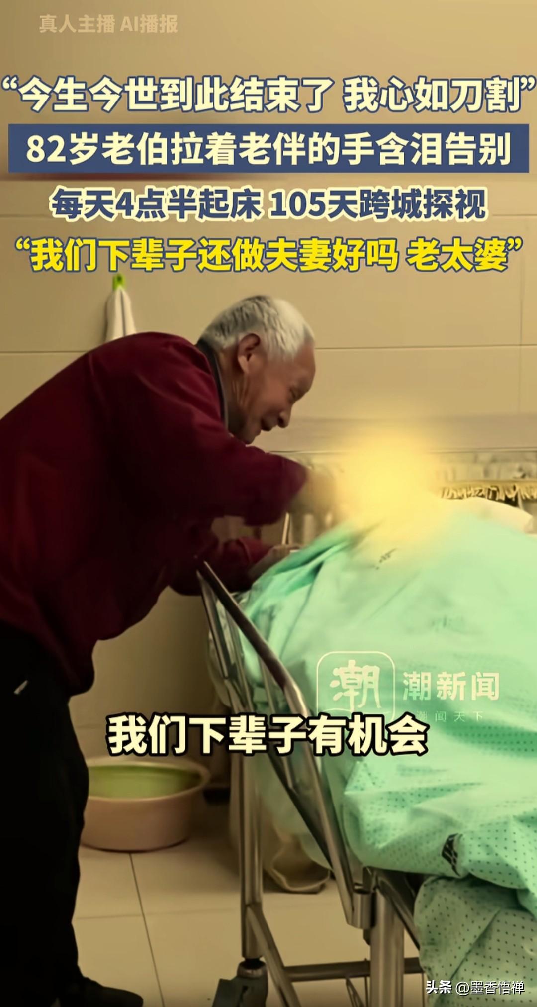 凌晨4点半起床,105天跨城守妻:82岁老人用行动回答,什么才是爱情最好的样子 凌晨4点半,天还没亮,82岁的陈老伯就起床了。 从舟山金塘镇到宁波市区,这条路他走了105天。先坐公交到客运中心,再换大巴过海,到了宁波汽车北站,还要再换一趟公交。三趟车,近4个小时,就为了赶在8点半之前,出现在老伴的病床前。 30元的大巴票,2元的公交票,一天60块。老人舍不得打车,因为这笔开销,刚好是他和老伴一天的退休金。 ICU的护士们悄悄把探视时间从10点半提前到8点半,不为别的,就为了让老人能赶上10点多那班回程车,不用在医院干等到下午。 老人的理由简单得让人心疼:能多看一眼,是一眼。病床上躺着的是薛阿姨,76岁,陈老伯的妻子。 在老人眼里,这个陪了他大半辈子的女人,是“世界上最好最好的老太婆”。这话他说了一辈子,现在也说给ICU里插着管子的她听。 她听得见吗?不知道。 但他还是每天都要说。 3月13日下午,薛阿姨还是走了。 家人从舟山赶来送她最后一程。陈老伯握着她的手,眼泪止不住地流。 他说:“今生今世的缘分到此结束了,我心如刀割啊,好比万箭穿心,痛苦的没办法想象,一有空了想你了就到坟头上去看看你……” 短短的这句话,让在场所有人都红了眼眶。 儿子陈先生站在一旁,看着父母,心里说不出的滋味。他说,父母这辈子相濡以沫,让他由衷地羡慕。但他更担心的是父亲——母亲走了,父亲的精神支柱没了。 能走出来吗?可能需要很长时间。 这个故事在网上传开后,网友们评论说:“儿子卖了房子,老伴陪到最后,薛阿姨已经得到了两个男子最拿得出手的爱!” “81岁,每天要坐5个小时的车,就是为了看半小时的爱人,老奶奶这辈子值了。听到那句:今生今世,就到此结束了,听到直接泪崩。” 还有网友说“我的父母年轻时打骂一辈子,但是当母亲送走父亲时,嚎啕痛哭。什么爱情、激情,都抵不过岁月带来的互相适应后的陪伴和习惯。” 也有很多人都在问同一个问题: 那现在的我们,还能这样爱一个人吗? 不是不想,是我们太忙了。 忙着加班,忙着应酬,忙着刷手机,忙着处理那些“重要”的事。等到想起该陪陪家人的时候,一天结束了,一周结束了,一年也结束了。 我们习惯了即时通讯,一条微信就能知道对方在干嘛,却很少真正出现在对方面前。习惯了用红包表达关心,用礼物证明爱意,却忘了爱最原本的样子——就是你在,我也在。 陈老伯不懂这些复杂的道理。他只知道,那个陪了他一辈子的女人躺在那里,他就得去看她。 不管多远,不管多早,不管多折腾。 他没有想过“今天要不就不去了”。在他这里,这不是选择题,而是必须做的事,就像呼吸一样自然。 其实仔细想想,陈老伯做的,不过是爱情里最基本的事:陪伴。 年轻的时候,他们一起种地、一起做饭、一起拉扯孩子长大。老了以后,一起遛弯、一起看电视、一起等着儿女回家过年。现在她病了,他就去看她。每天去,一直去,直到她走。 没有什么惊天动地。 但恰恰是这种“没什么”,最难做到。 因为我们总以为来日方长。总想着等忙完这阵子,等攒够了钱,等孩子上了大学,等退休了……再去好好爱。可是等着等着,有些人就等没了,有些话就来不及说了。 什么是爱情最好的样子? 是18岁的玫瑰?是25岁的求婚?还是30岁的房子车子? 或许都不是。 爱情最好的样子,是82岁那年,你还能凌晨4点半起床,走上4个小时的路,只为看她一眼。是105天风雨无阻,从没想过放弃。是她走了之后,你说的那句“我心如刀割”,比任何誓言都重。 薛阿姨走了。但这105天的故事,还留在这座城里,留在每一个被感动的人心里。 写到这里,想起一个问题: 我们总说羡慕老一辈的爱情,羡慕他们从一而终、白头偕老。但我们有没有想过,那样的爱情不是天上掉下来的,而是一天一天、一年一年,熬出来的。 就像陈老伯这105天。 每天4点半起床,每天转三趟车,每天说一句“你是我世界上最好最好的老太婆”。 没什么特别的。 只是恰好,他坚持了105天。而在这之前,他们已经坚持了一辈子。 最后,想问问正在看这篇文章的你:你心里那个关于“爱情”的画面,是什么样子的? 是鲜花钻戒,还是柴米油盐?是轰轰烈烈的誓言,还是平平淡淡的陪伴? 正如一网友说的,从来不羡慕年轻的情侣,只羡慕人到白头还一直爱着的人,爷爷说好比万箭穿心,我想这位奶奶这辈值了。 如果有一天,你的爱人也需要你这样守候。 你愿意这样去守候吗? 欢迎在评论区聊聊你的答案。 来源:人民日报