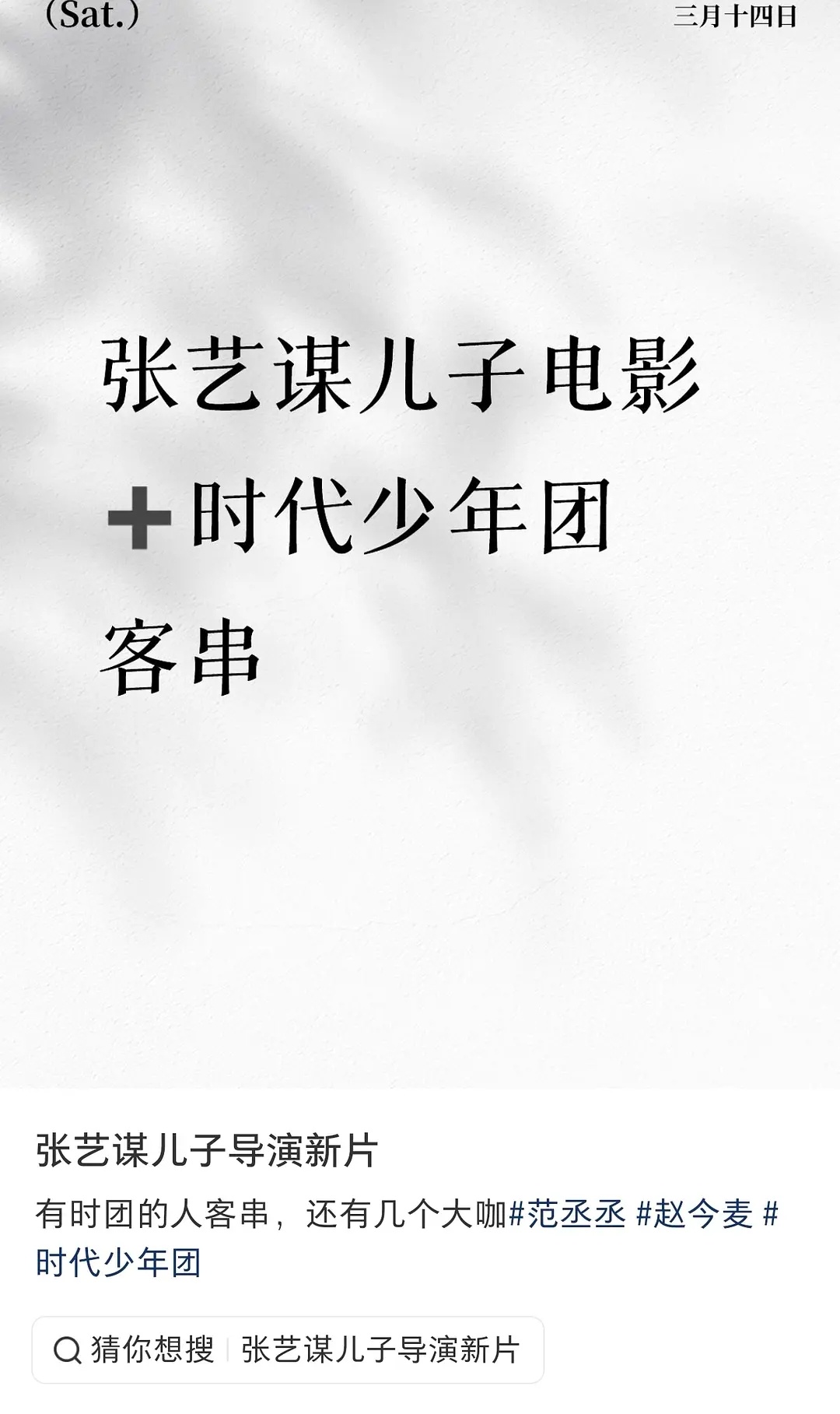 范丞丞赵今麦新片 张译千玺时代少年团客串