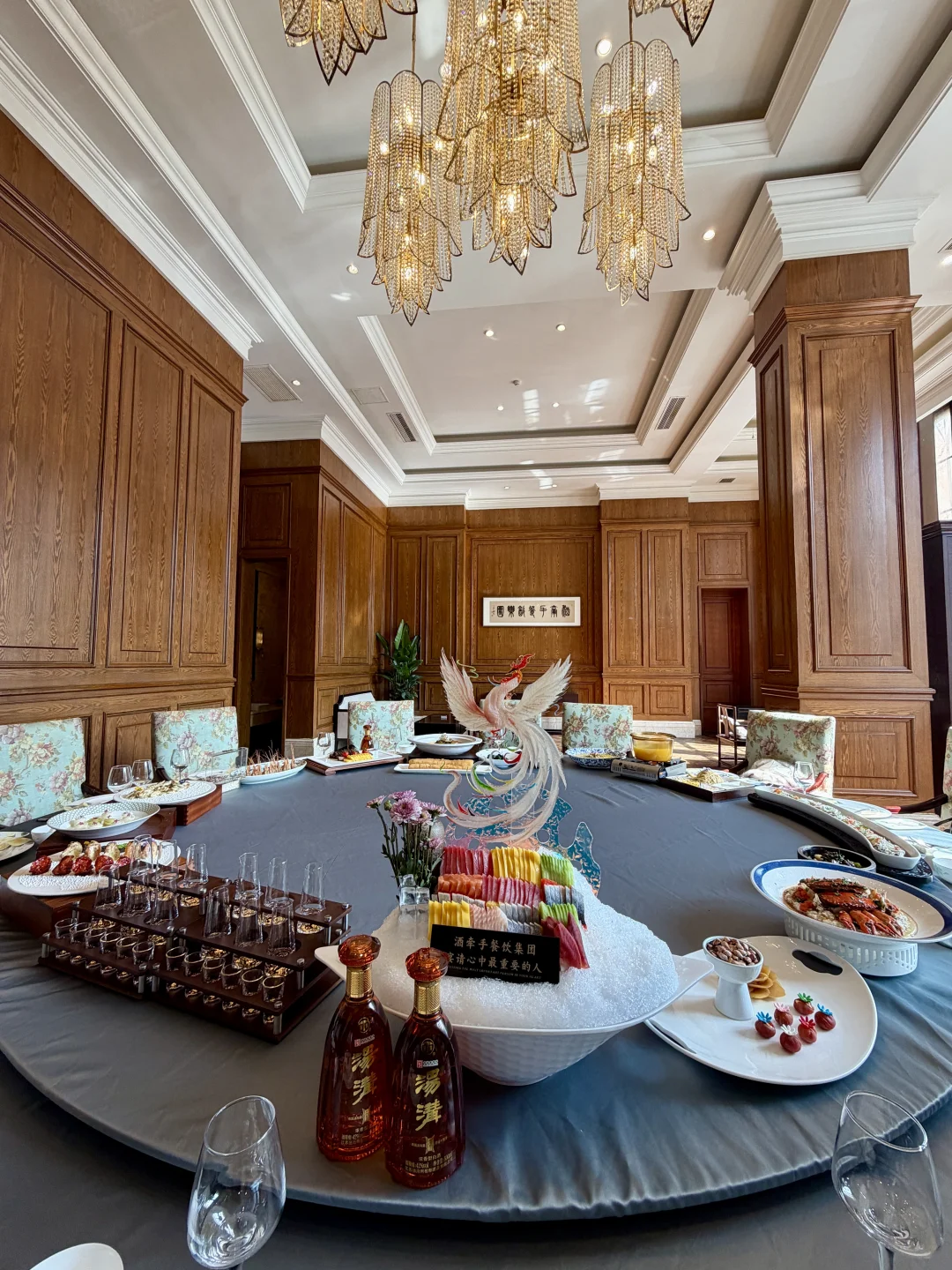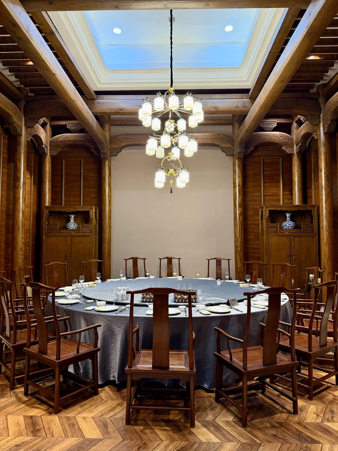 环境真的戳我!原木风包间配水晶吊灯