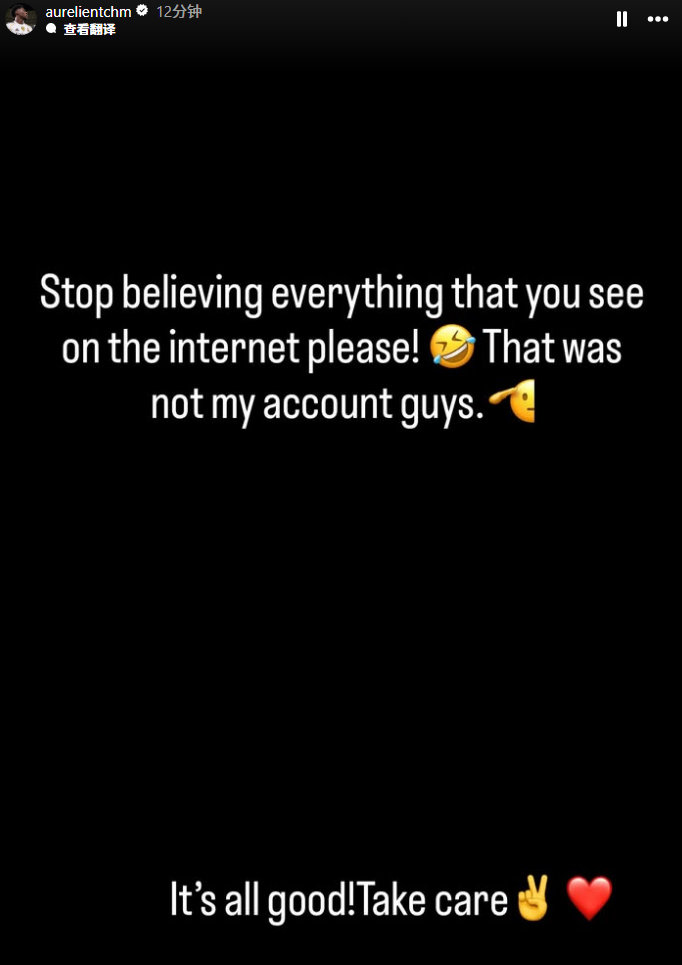楚阿梅尼:“别再相信网上看到的一切了!🤣 那不是我的账号,朋友们。🫡 我们一切都好!✌️❤️”