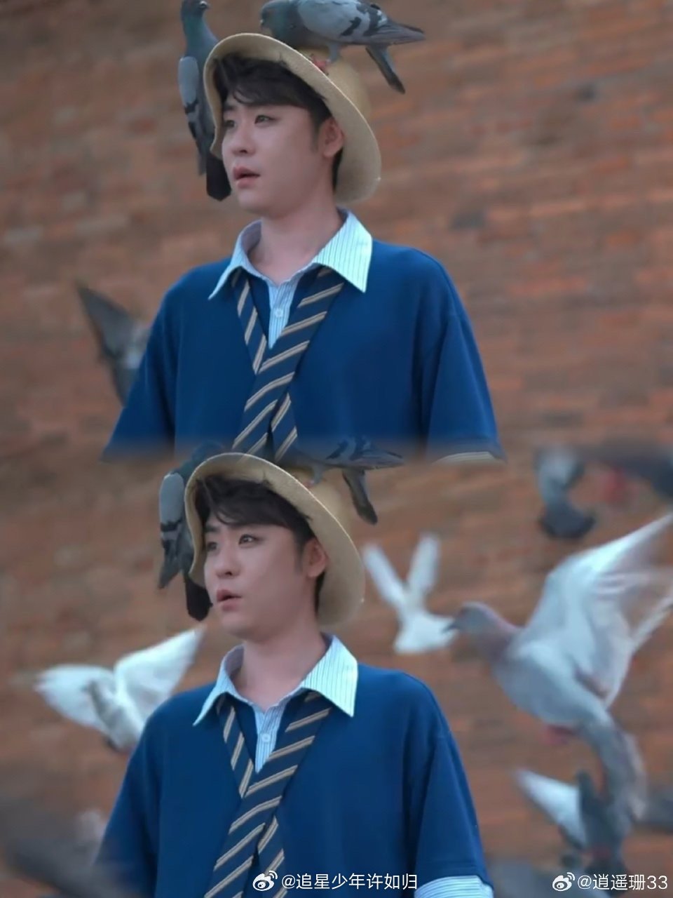 张云雷戴了一头鸟 食物放在帽檐上等鸽子来,结果真的收获了一整顶“小鸟帽子”。张云雷被鸽子包围时那懵懵的表情,想动又不敢动的小心翼翼,又软又乖的画面让人忍不住反复观看。