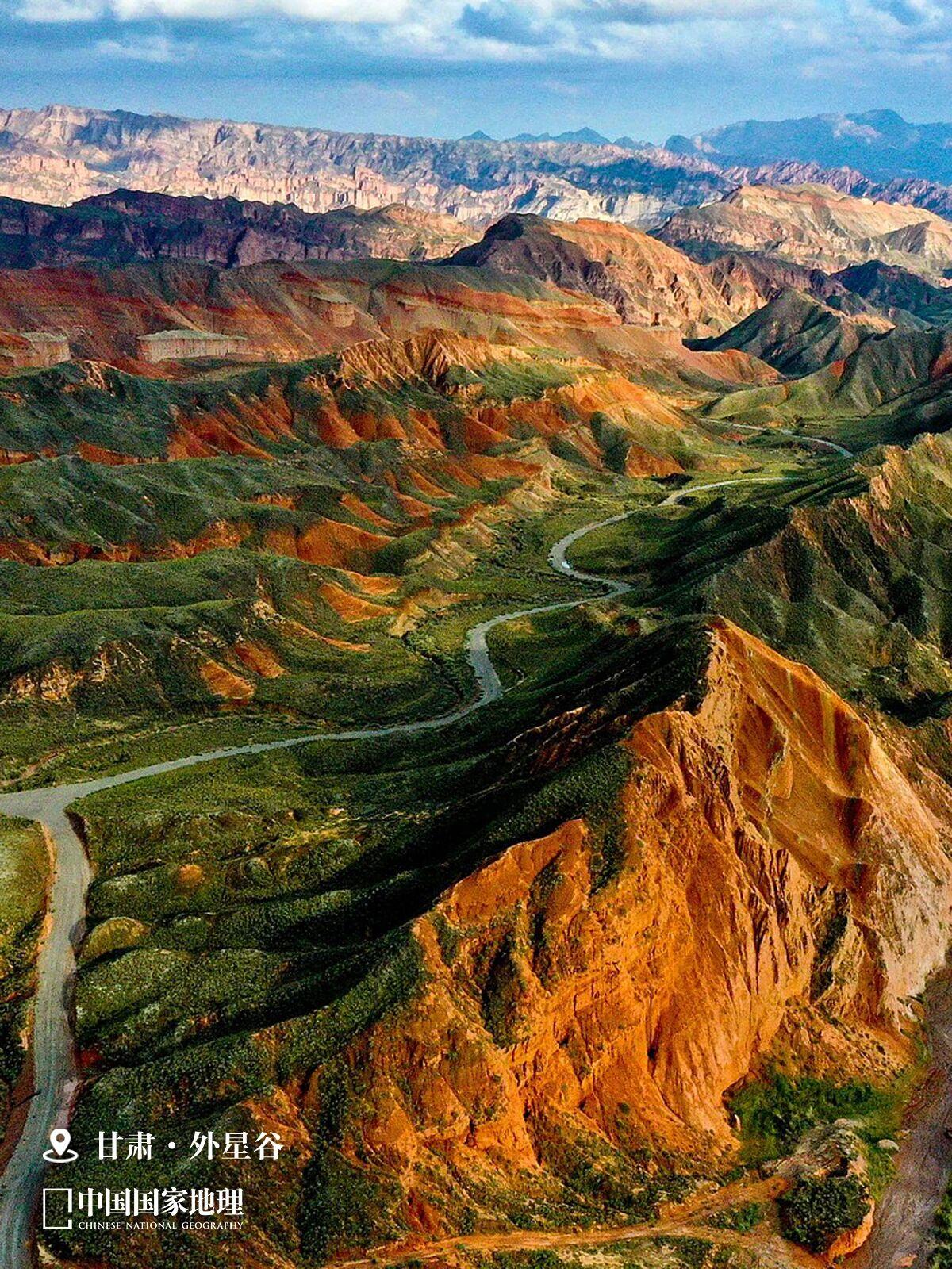 它们看似比外星更遥远,却离你的心很近。假如春意太喧嚣、花粉太呛人、世界太吵闹,不如去“外星”待一会儿——这9个地方可以是你的“荒芜避难所”。 如果在中国地貌分类中有“外星地貌”,那么若论该地貌最丰富、最广大、最密集、最震撼的3个省级行政区——青海、新疆、甘肃,三者几乎没有争议。 我们从3省区中各选3个“外星地貌”代表——这9种风景,说真的,外星人见了都会觉着“见外”。来!和地理君一起,在这些寂静、清冷,甚至荒芜的“外星”,放空一下思绪吧。 图①新疆阿克苏地区拜城县克孜尔乡烈焰泉,此处水火共生,地下富有天然气,沿裂隙上升可从泉水附近排出,遇火即燃。 图②青海海西蒙古族藏族自治州德令哈市,《飞驰人生3》取景地之一。这里有片荒凉美丽的沙湖名叫托素湖,“外星人遗址”的木牌立于湖畔,据说很多人去过后都“信以为真”。 图③甘肃酒泉阿克塞哈萨克族自治县, 刚好地处甘肃、青海、新疆交汇处,可谓集三大“外星地貌”省(区)之大成,图为该县多坝沟村胡杨峡。 图④青海海西州茫崖市,太多举世闻名的“外星地貌”集结于此,篇幅有限,因此推荐:火星一号公路,它北有俄博梁、黑独山,南有水上雅丹,东有大柴旦翡翠湖,西有艾肯泉,它就像“银河系交通枢纽”的“十字路口”。但该路段难度系数很高,请慎重再慎重,不要贸然前往,务必注意安全! 图⑤新疆塔城地区沙湾市安集海大峡谷,安集海河出天山北坡切开数百米五彩沟壑,大地就此崩裂成最绚丽“伤痕”。 图⑥甘肃张掖市肃南裕固族自治县外星谷,9月一场秋雨后,丹霞更红、绿意更浓,分外妖娆。 图⑦青海果洛藏族自治州久治县,如果“外星”不止有荒芜,而有比地球更生机勃勃、更美好纯净的画风,或许就是这片“天神花园”的模样(年保玉则已停止开放)。 图⑧新疆哈密大海道,古丝路最荒凉路段之一。哈密也是星空观测绝佳之地,宛如在“外星”近距离凝望外星。 图⑨甘肃敦煌雅丹国家地质公园,雅丹地貌如“外星舰队”向着异星的远方挺进——无论身处何地的地球人遥望此等宏大时,烦恼想必都会缩小。