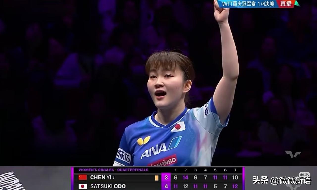 大藤沙月:“我对自己的打法越来越有自信了,这是我能够取胜的原因之一。”确实决胜局的时候,大藤沙月打的更坚定,陈熠没有把握好关键分,侯英超后面说:“你都给人家按地上了,又给人家拽起来了”。 陈熠的技战术时而清晰时而模糊,侯老师说像拉抽屉,侯老师有段时间没吭声,一吭声就来了句:为什么还发短的。最后一个球赢的时候大藤自己都不相信,今天大藤沙月肩膀拉伤了,后面医疗暂停回来速度和质量明显降了,陈熠有机会赢下比赛的,但是缓了两局后,决胜局看到大藤状态又来了。 陈熠下来还是要好好总结比赛,这次重庆冠军赛马琳给王曼昱和陈熠做场外,她俩都是输给大藤沙月了,接下来要好好研究大藤沙月了,大藤沙月说这次自己在技战术上有改变,发长球多。今晚到了决胜局,看到大藤沙月心态还是很好,明天的半决赛还是七局四胜制,大藤沙月将对阵张本美和和石洵瑶之间的胜者。