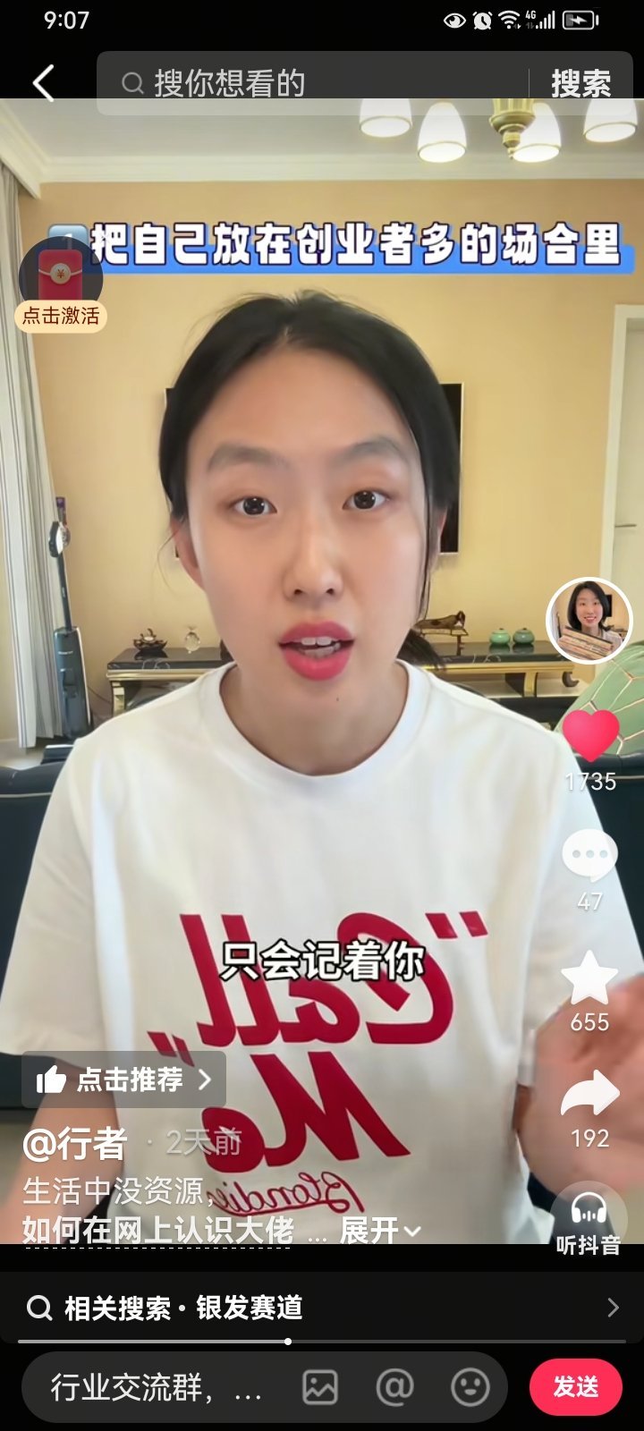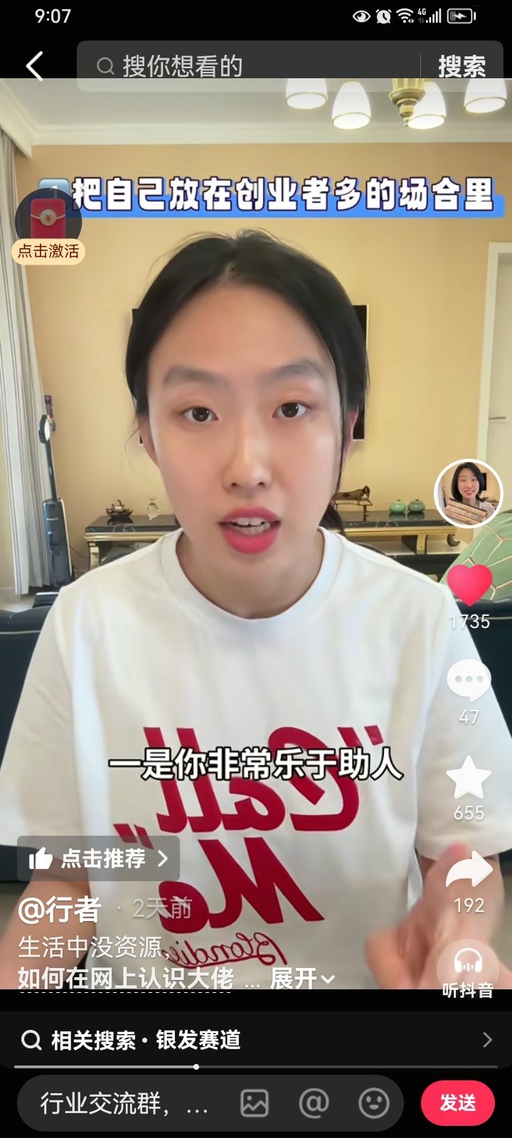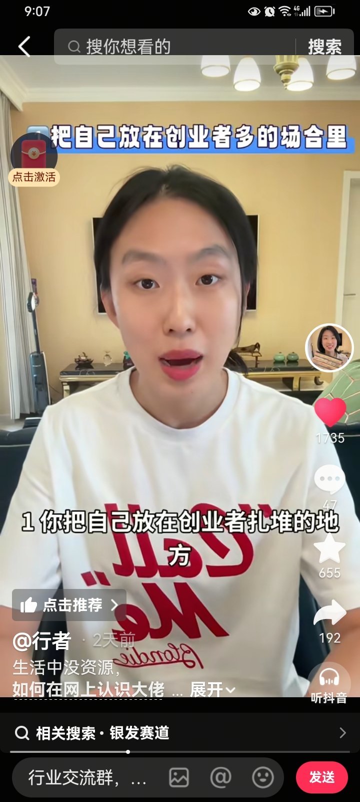 找到合伙人的办法。行业交流群,经常输出,把自己的个人魅力和想法宣传出去,让大佬看到你。做视频博主,同频的人一定会相遇