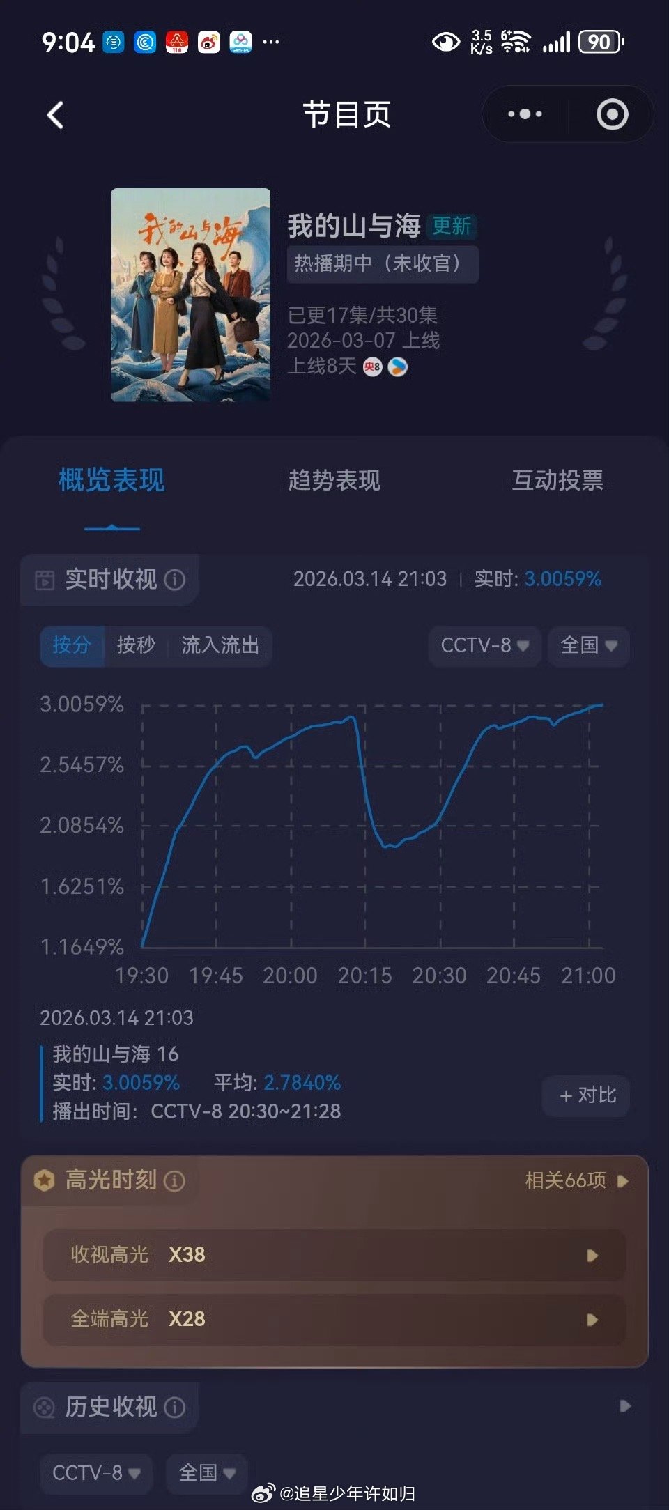 谭松韵我的山与海收视破3 方婉之的两个爸爸太好哭了,三姐妹搞事业又太好看了!《我的山与海》双线并行直接锁死遥控器,今晚收视峰值飙到3.0059%,拿下今年央8优酷实时收视破3头一份。谭松韵这扛剧体质太绝了!