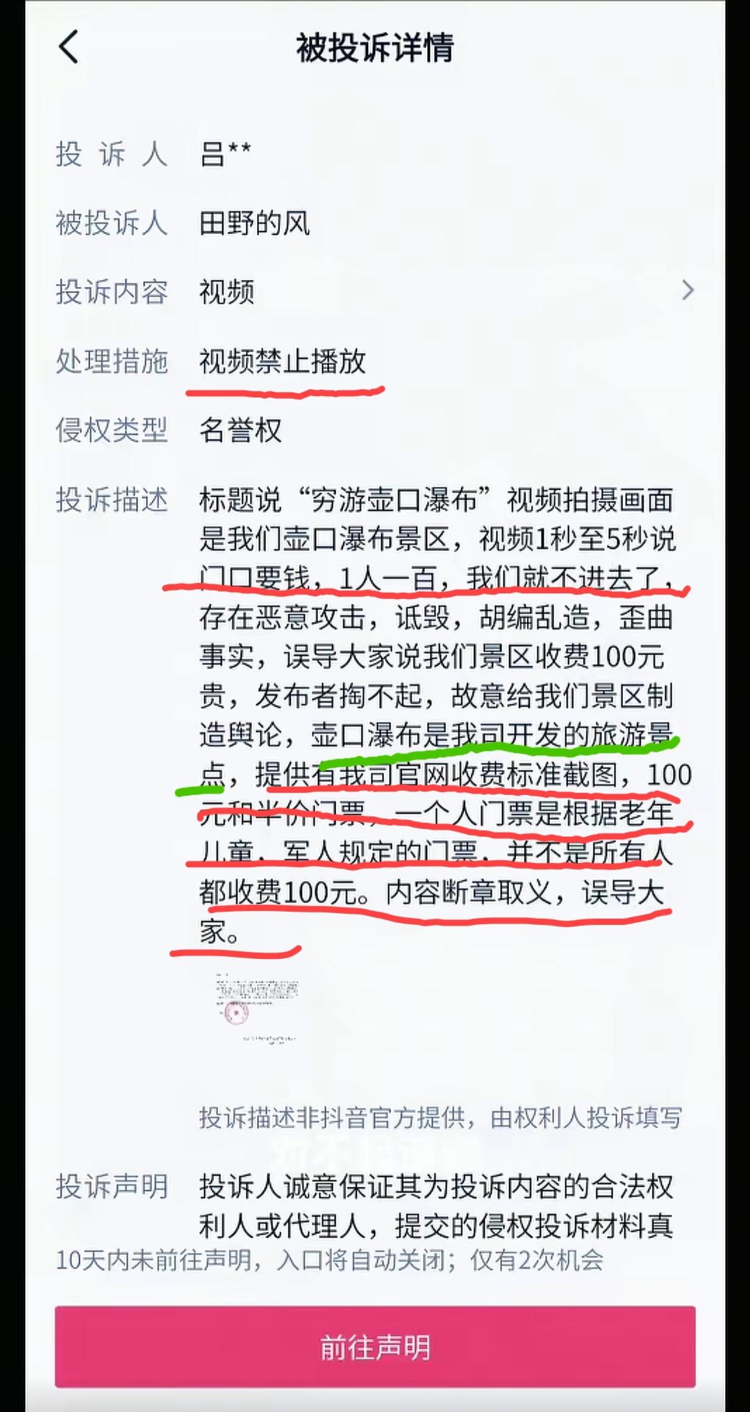 男子拍摄黄河壶口瀑布被壶口景区投诉,投诉理由是:侵犯了名誉权,内容有误导大家,断章取义之嫌。 这位大哥在视频里面大喊“妈,我们来看你了,但不进去了,因为门口要100块钱”…… 而景区方给出投诉的理由是:并不是所有人都收100元的门票,还有半价票、老人儿童票,军人票! 另外,景区方有这么一句表述:“壶口瀑布是我司开发的一个旅游景点”。如果说那种新建的游乐城,比如迪士尼、方特这种,可以说是新开发的。像壶口瀑布这样的自然景观,也说是他们公司开发的,这好像有点搞笑哦?