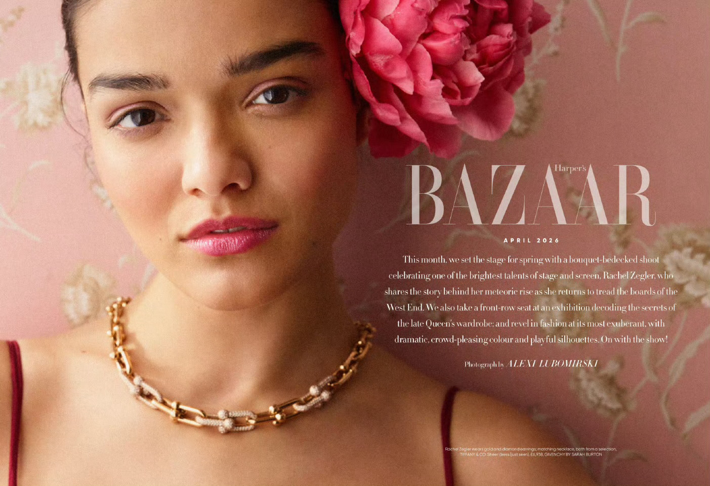 Harper’s Bazaar UK April 2026 英国版 Bazaar 四月刊大片美国女演员 Rachel Zegler Tiffany 和 Simone Rocha .