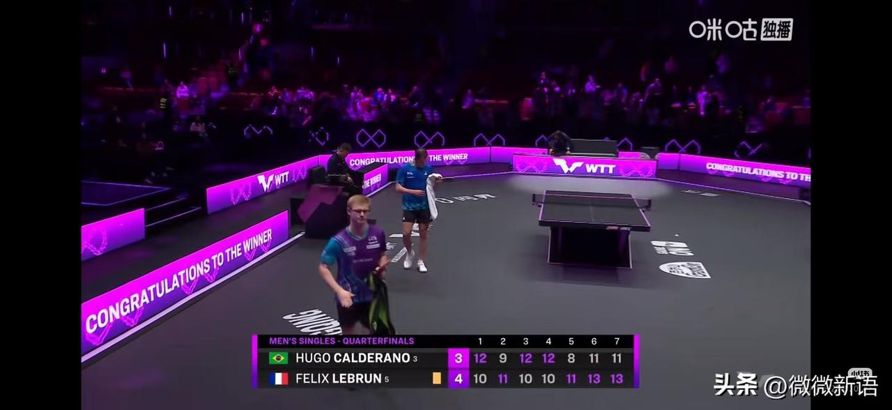 小布和雨果的比赛打完都11点了。 不过小布真的很顽强啊,在大比分1/3落后的情况下,是连扳三局,看他俩的比分,除了第五局是相差3分,剩下6局都是两分之差,而且有5局都是爆分了,看到有网友说:“人牛,比分更牛”。 菲利克斯·勒布伦4-3战胜雨果,晋级男单四强,小布是真的涨球了,打的挺好,赢下比赛后的小布也是高举双臂庆祝了,雨果输得也有点可惜,两分之差。明天的半决赛小布将对阵松岛辉空,看了他俩之前的交手记录,小布是2次比赛都赢了,希望明天小布可以赢松岛辉空。 今天的8场比赛,这一场打的最精彩了,现在男单四强出来了,明天半决赛温瑞博对阵张本智和,小布对阵松岛辉空;女单半决赛王艺迪对阵蒯曼,大藤沙月对阵张本美和。不过今晚国乒连输三场日本队的比赛,也是第一次见,赛后好好复盘吧,松岛辉空上次输给王楚钦后哭了,就一直憋着一股劲儿想赢,赛后他说自己为这场比赛付出了很多的努力。