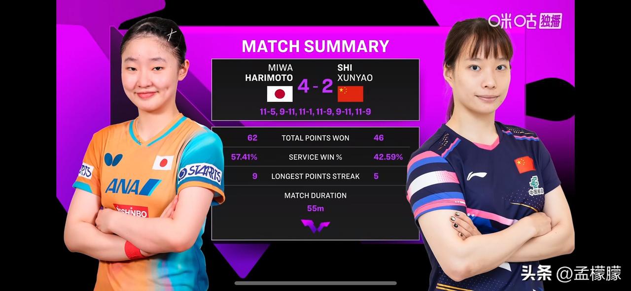 WTT冠军赛重庆站2026丨石洵瑶2-4憾负张本美和 ,无缘四强,女乒下半区失守。 女单1/4决赛: 石洵瑶🇨🇳2-4张本美和🇯🇵【5-11,11-9,1-11,9-11,11-9,9-11】 半决赛对阵:蒯曼🆚王艺迪,张本美和VS大藤纱月 乒乓球乒乓重庆冠军赛 重庆乒乓冠军赛
