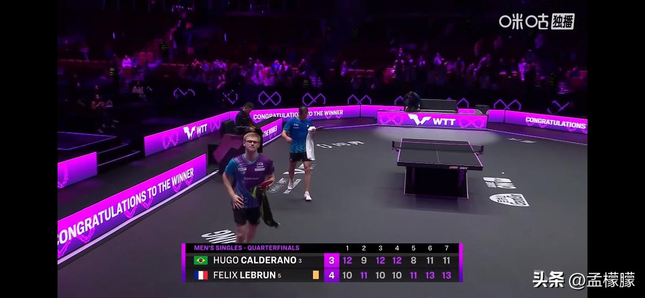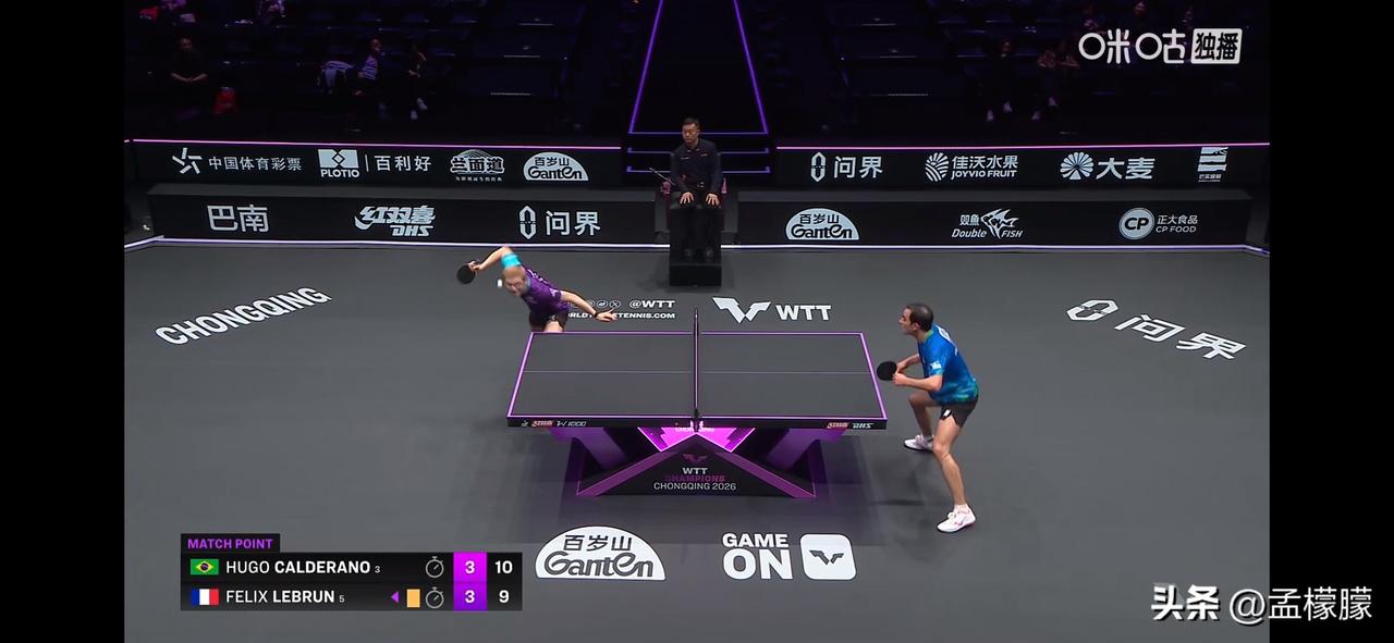 WTT冠军赛重庆站2026丨法国一哥小勒布伦1-3逆转,4-3战胜巴西雨果,晋级四强,对阵日本松岛 男单1/4决赛: 费利克斯·勒布伦🇫🇷4-3雨果·卡尔德拉诺🇧🇷【10-12,11-9,10-12,10-12,11-8,13-11,13-11】 乒乓球乒乓重庆冠军赛 重庆乒乓冠军赛
