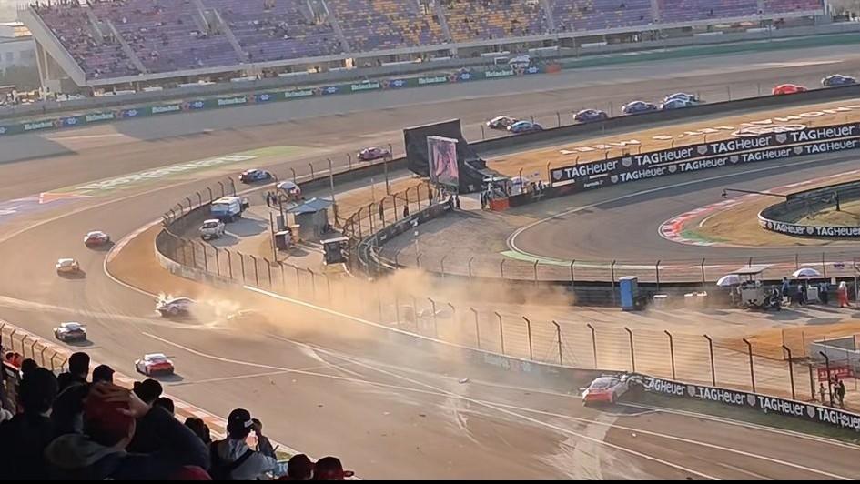 上海国际赛车场发生“四台赛车相撞”的事故,好在事发时是发车阶段,速度还不是很快,赛车手应该是没有大问题的。 事件原因是杆位出发的那台赛车速度始终起不来,造成后面的三台车躲避不及而撞在了一起。 杆位发车,出现如此大的失误,真的是太可惜了,不管是操作失误或者是赛车故障!