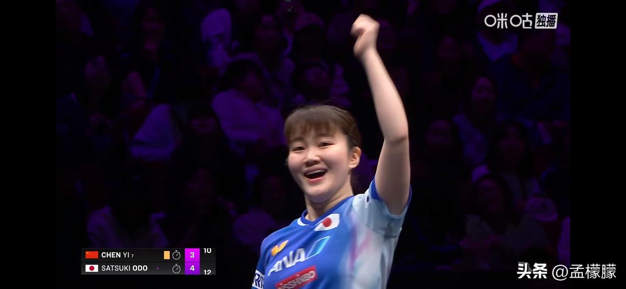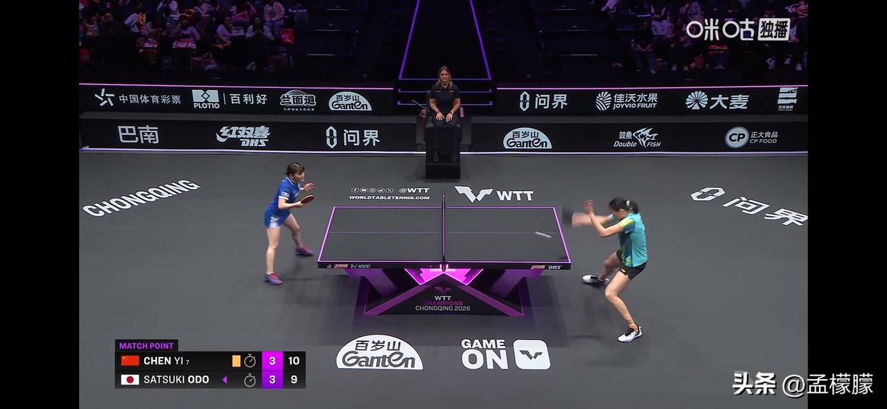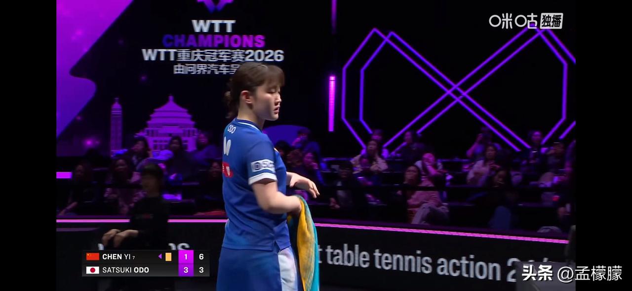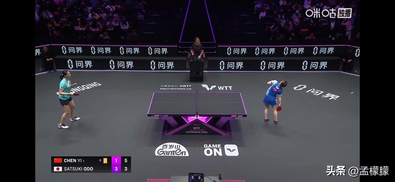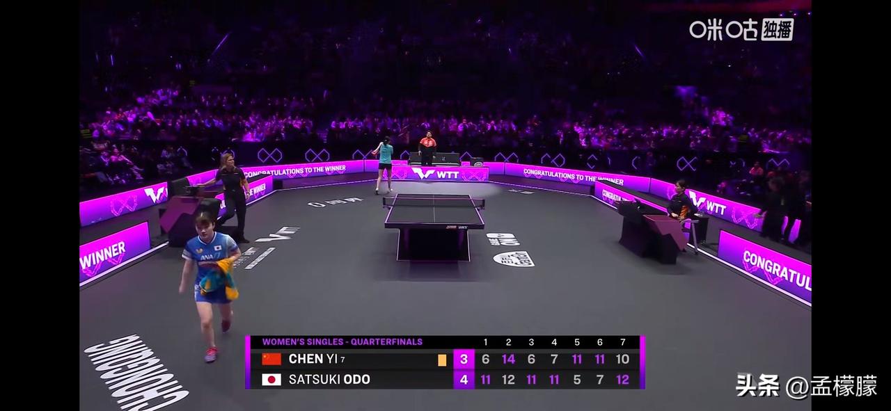 陈熠1-3追到3-3。 决胜局打得跌宕起伏,开局陈熠0-5,最后10-9没有拿下。 第五局大藤沙月3-5时,右臂扭了一下,请求医疗暂停。 女单1/4决赛: 大藤沙月(JPN)4-3陈熠(CHN)【11-6,12-14,11-6,11-7,5-11,7-11,12-10】 乒乓球乒乓重庆冠军赛 重庆乒乓冠军赛