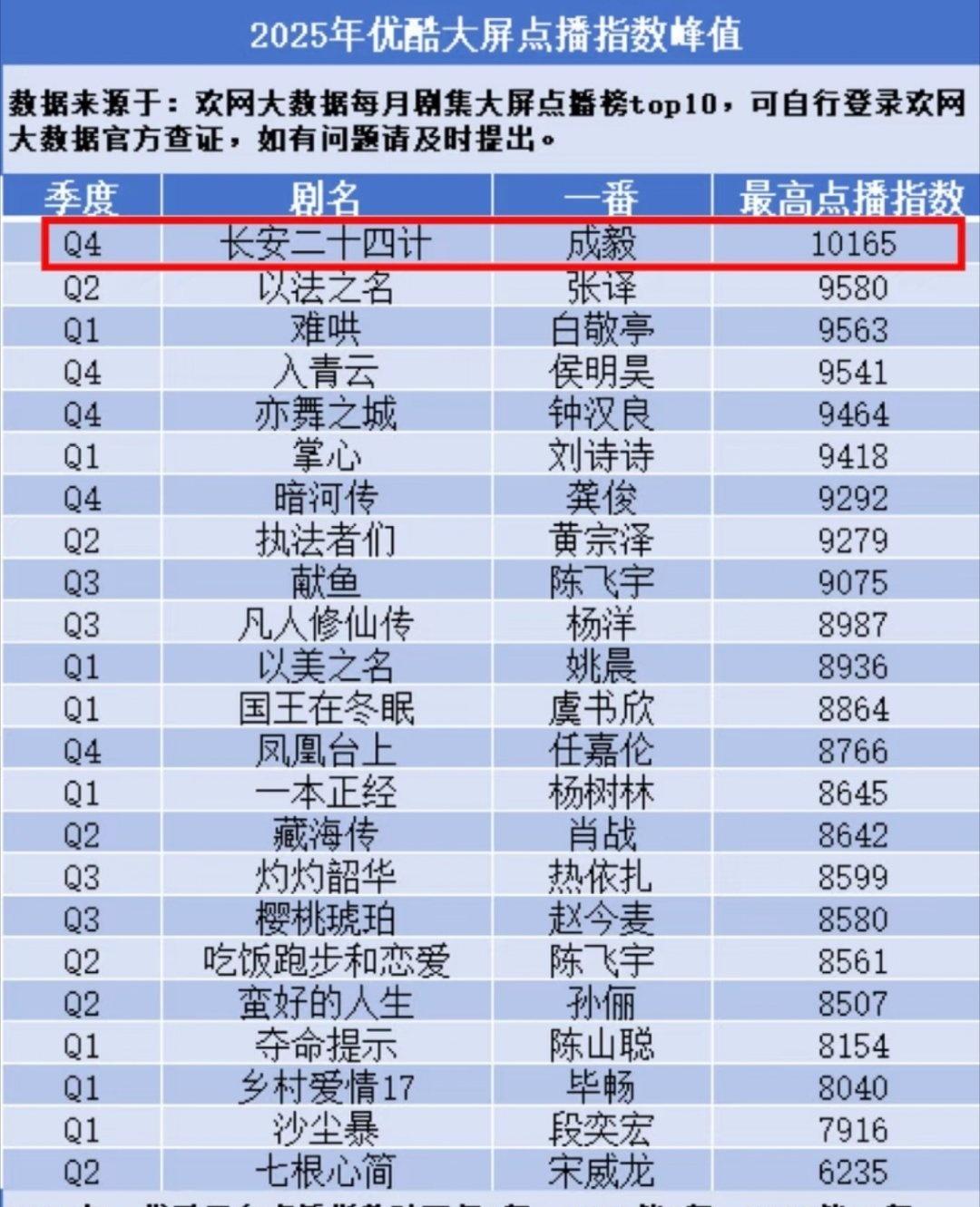 优酷2025年大屏点播指数唯一破万剧集,正是成毅主演的《长安二十四计》!🔥 这波简直是优酷的釜底抽薪之笔,在年末剧集里杀出重围,成了独一份的爆款!作为成毅接连播出的第三部作品,它赶在12月12日上线,却用实打实的大屏点播数据狠狠证明了实力——这可是最硬核、最不含水分的收视反馈! 真心佩服成毅的扛剧能力,《长安二十四计》值得一生推!