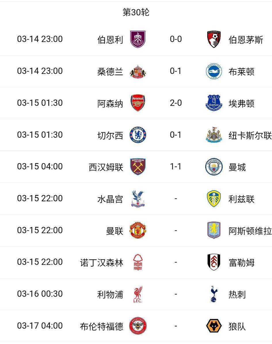 英超彻底大结局?阿森纳夺冠概率高达93%,曼城两连平少赛一场落后阿森纳9分。果然是世界第一联赛,英超过于疯狂…… 切尔西近5轮1胜与利物浦同分,前5名难保;西汉姆联在曼城身上拿分已与热刺同分,保级之路又稳了一步。 伯恩利0-0主场逼平伯恩茅斯,升班马再度深陷降级区,降级不可避免。