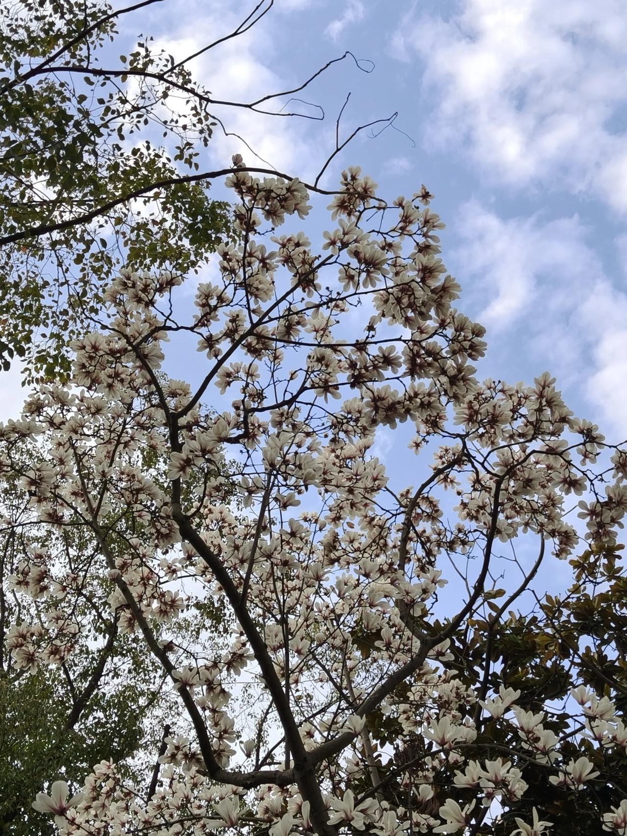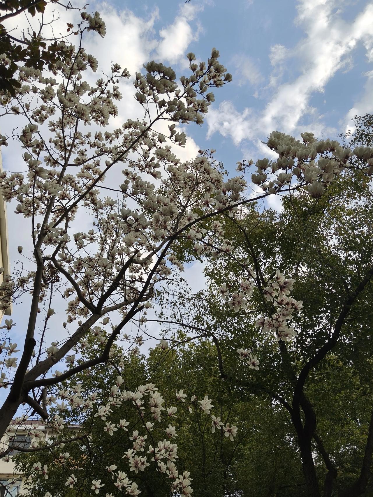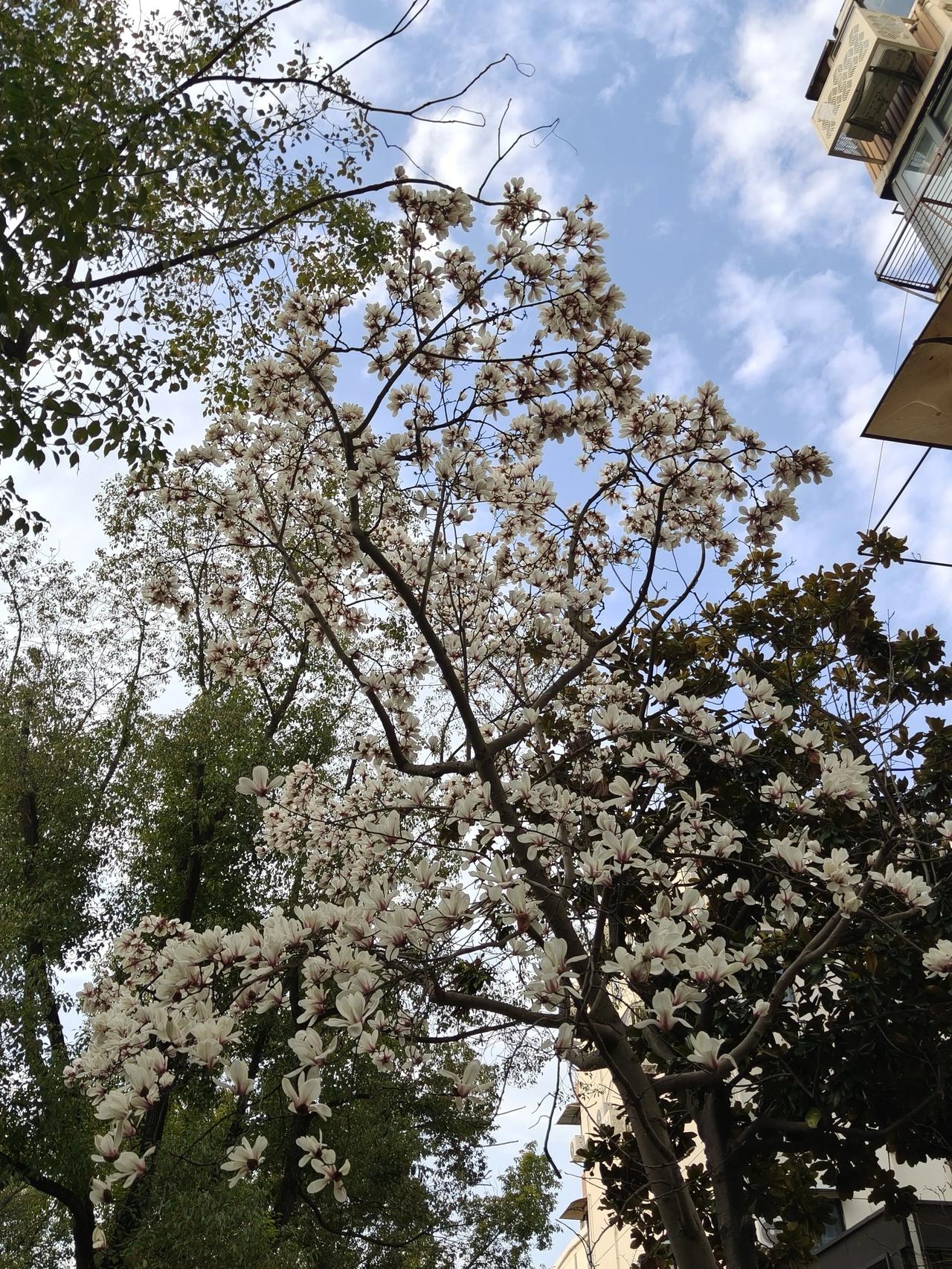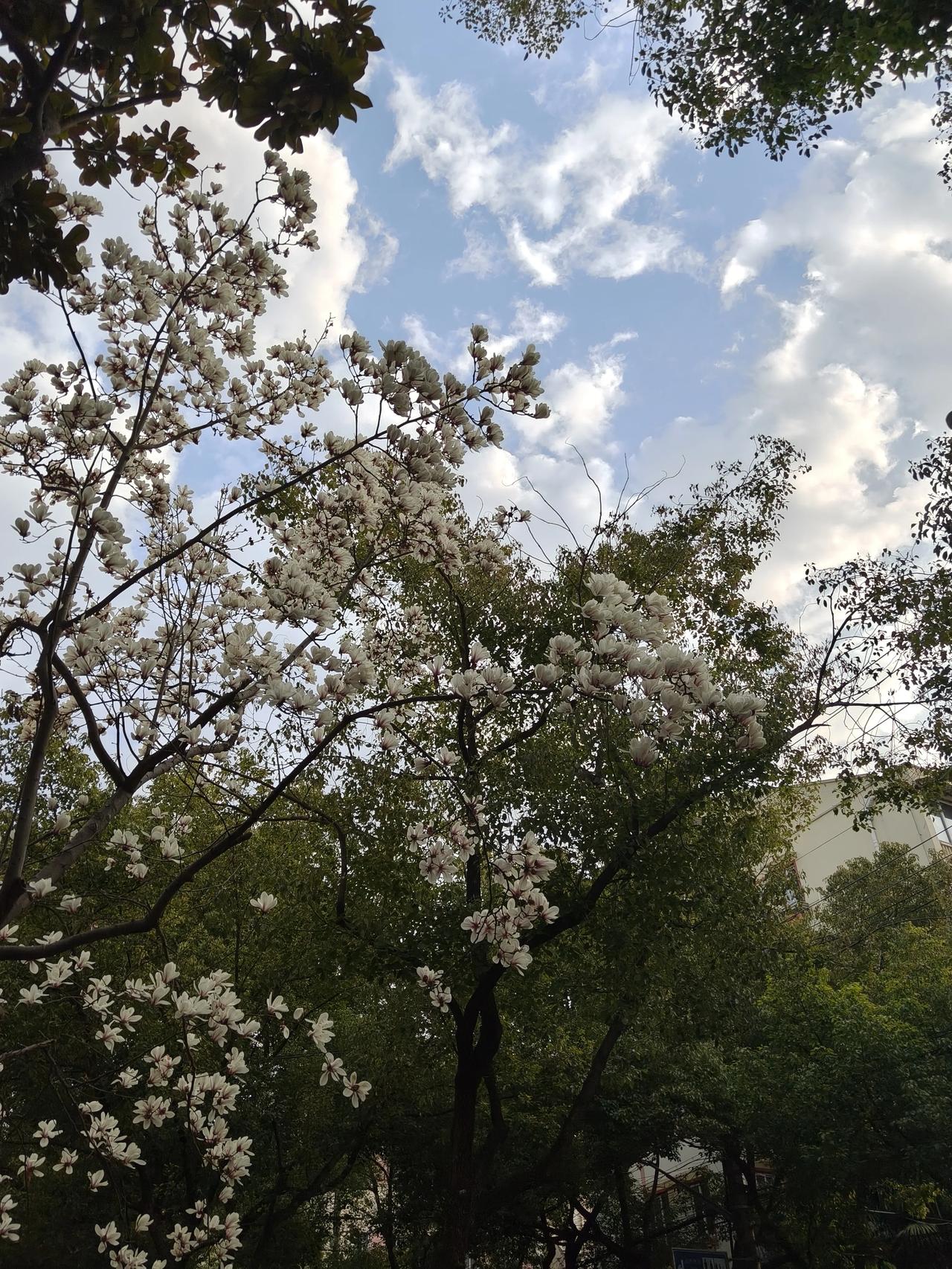 小区门口的玉兰花已经开始悄悄落下花瓣了!