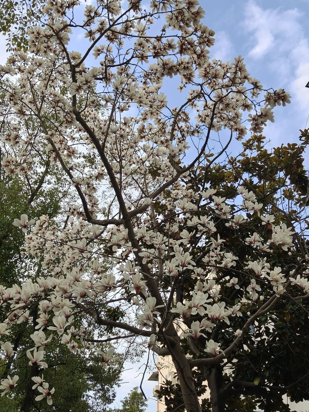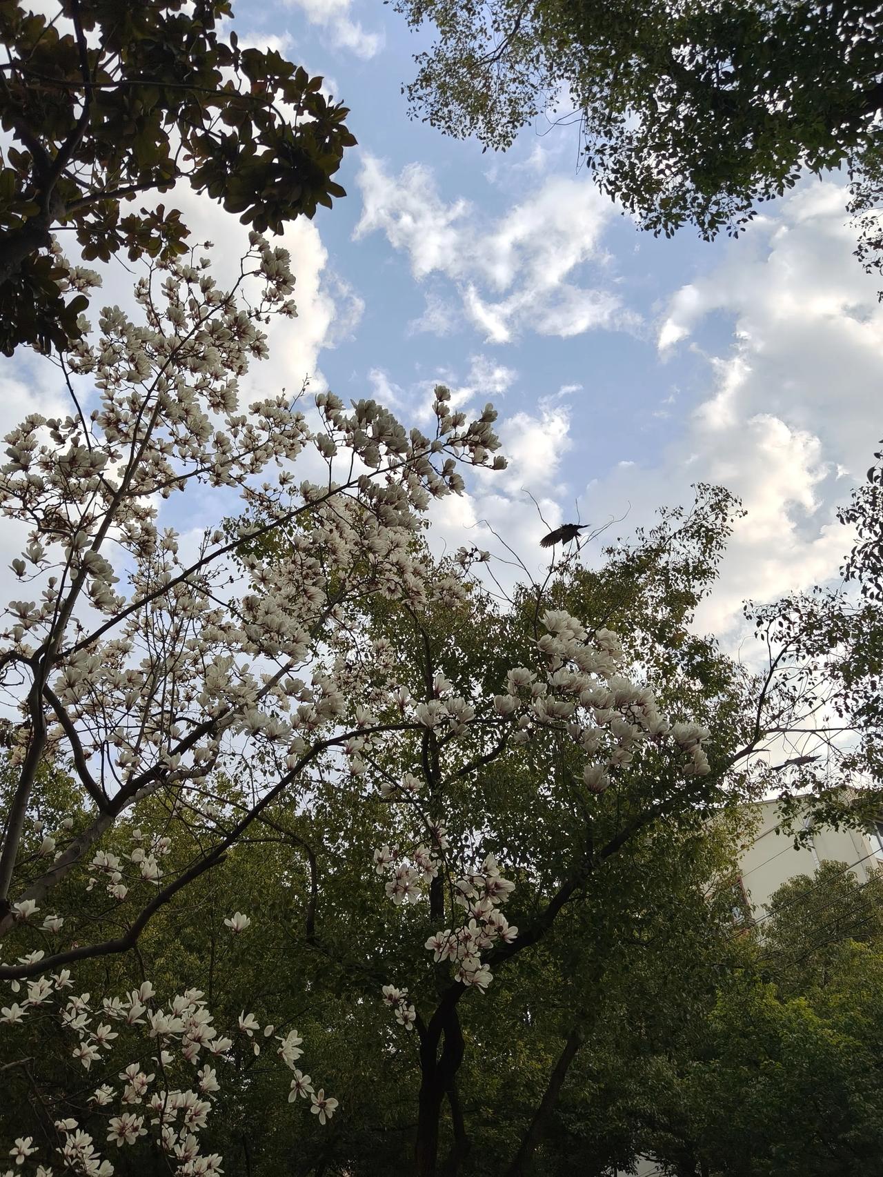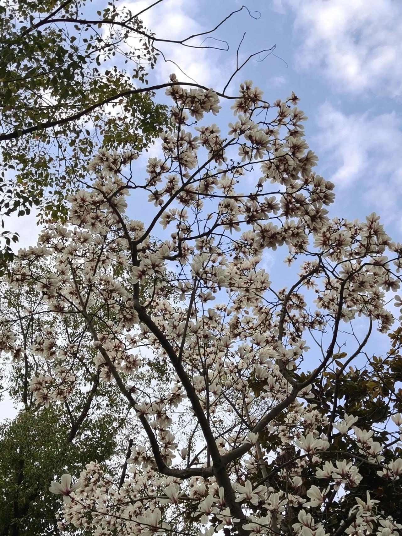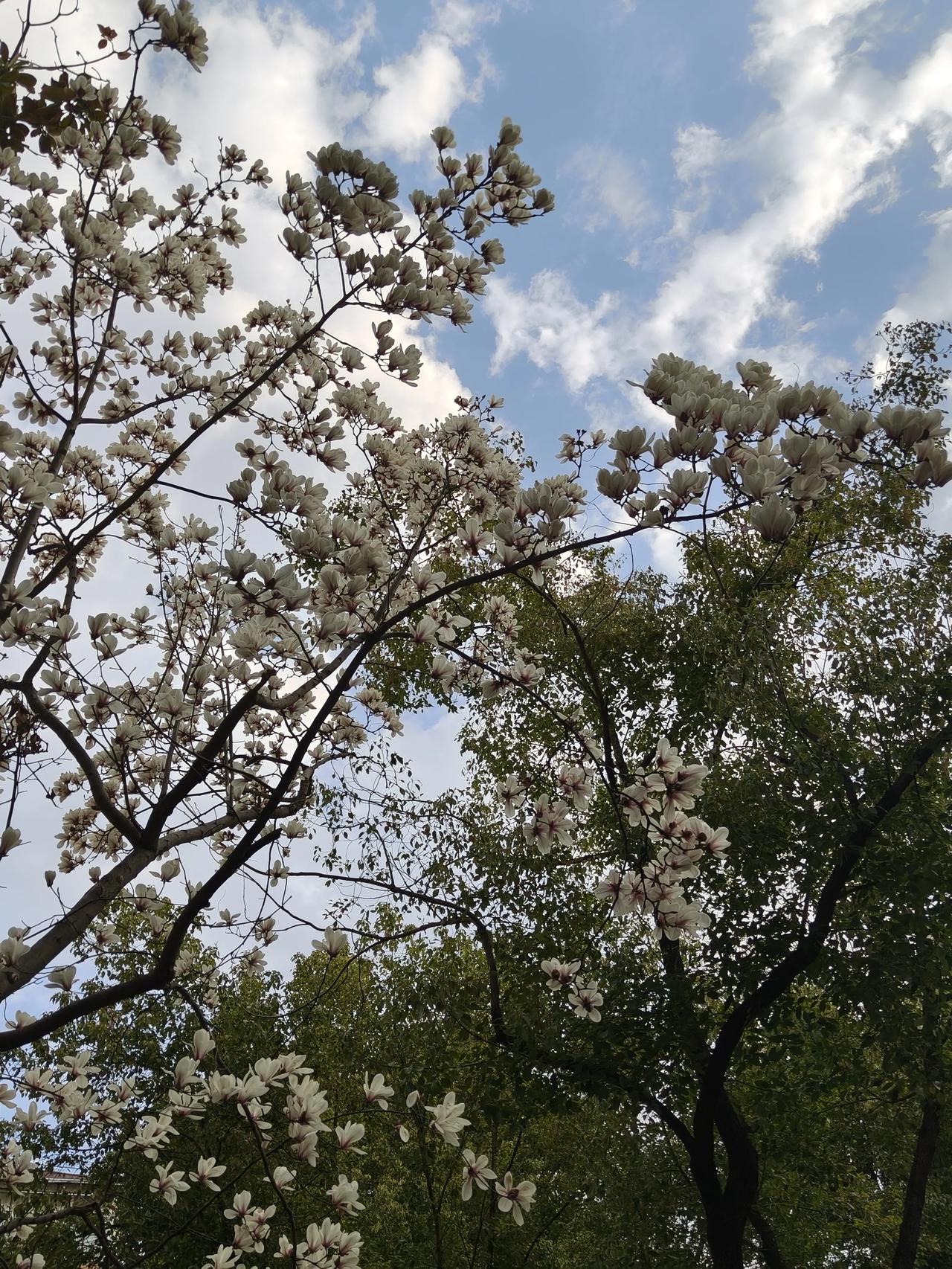 小区门口的玉兰花已经开始悄悄落下花瓣了!