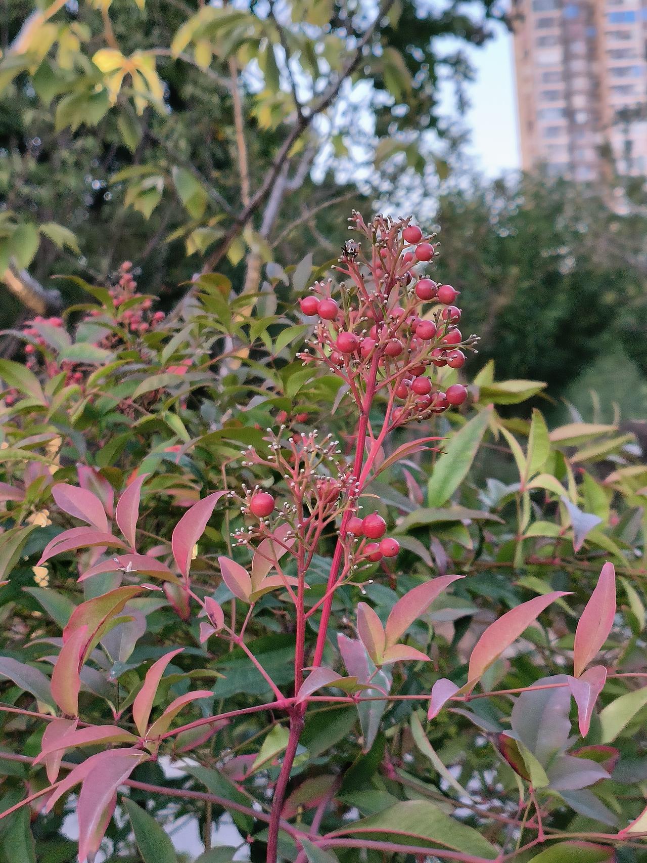 南天竹,生成在普通的公园里, 有没有人欣赏,都在顽强地生长。 带给人间一抹美好,