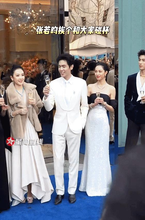 刚看到现场照,直接甜到懵。 47岁的章子怡做Tiffany开业的压轴,以全球代言人身份被张若昀抬杯相敬,她笑得像个无忧的小女孩,玩弄酒杯、轻轻摇头,脸上多了份温柔的圆润。 深V配皮草,既讲风度也讲温度。 张若昀像个周到的礼仪人,敬完章子怡又周围一圈抬杯,最后微啜收场,分位到位不生硬。 明星场里的礼节,既是公关也是修养,对比过那种只会碰杯敷衍的公司酒局,眼前这幕格外舒服,留下的是气场还是戏码,值得琢磨。