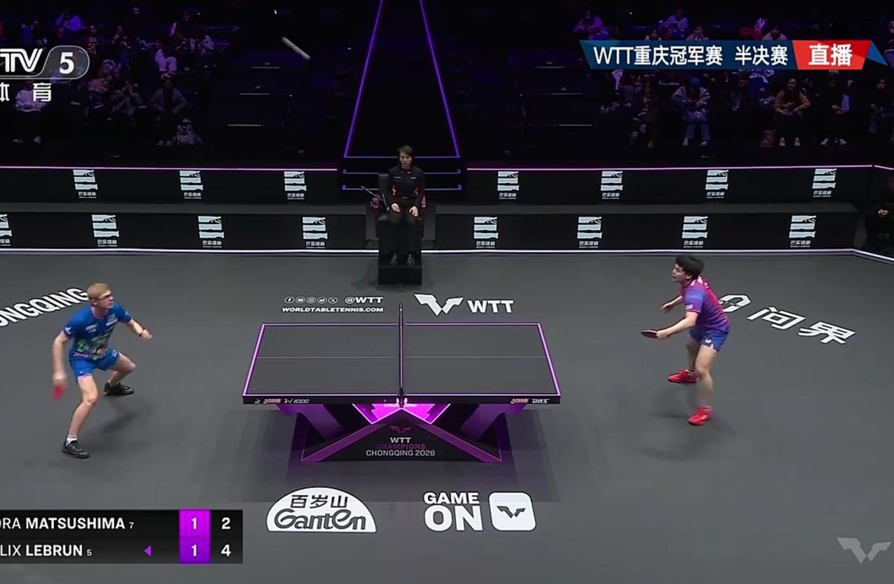 WTT重庆冠军赛男单半决赛 在刚刚结束的第一场男单半决赛中,日本名将松岛辉空迎战法国名将菲利克斯勒布伦。比赛非常精彩,前两局结束双方战成1-1平。随后松岛辉空突然爆发,连赢两局局分3-1领先。落后的菲利克斯勒布伦背水一战,连赢两局。把局分追到3-3平。决胜局菲利克斯勒布伦乘胜追击。最终菲利克斯勒布伦逆转绝杀松岛辉空,率先晋级男单决赛。将和张本智和与中国小将温瑞博之间的胜者。 第一局,松岛辉空开局阶段取得7:0的领先。菲利克斯勒布伦不断追分。最终松岛辉空11:7先拔头筹取得开门红。 第二局,开局阶段菲利克斯勒布伦取得5:1的领先。松岛辉空把比分追到5:6;8:9,最终菲利克斯勒布伦11:8扳平局分。 第三局,开局阶段双方战成1平、2平。菲利克斯勒布伦连得5分7:2领先。松岛辉空把比分追到6:7,最终松岛辉空11:9单局逆转获胜,局分2-1领先。 第四局,双方打的难解难分,比分战成3:3、4:4、6:6,菲利克斯勒布伦10:8拿到局点,松岛辉空挽救两个局点把比分追到10:10平。最终松岛辉空13:11再次单局逆转获胜,局分3-1领先。 第五局,开局阶段双方打的难解难分,比分从2平、3平、来到4平。菲利克斯勒布伦6:4领先。10:6拿到局点,11:6扳回一局,把局分追到2-3。 第六局,开局阶段双方战成2平、3平。松岛辉空连得两分5:3领先。菲利克斯勒布伦连得4分,7:5反超比分领先。菲利克斯勒布伦10:6拿到局点。11:6拿下此局。双方战成3-3平,回到同一起跑线上,进入决胜局。 决胜局,开局阶段菲利克斯勒布伦取得4:2的领先。松岛辉空把比分追到6:6平。菲利克斯勒布伦连得4分。10:6拿到赛点,11:6收割比赛。最终,菲利克斯勒布伦连赢三局,逆转绝杀松岛辉空,晋级男单决赛。静候张本智和和温瑞博之间的胜者。