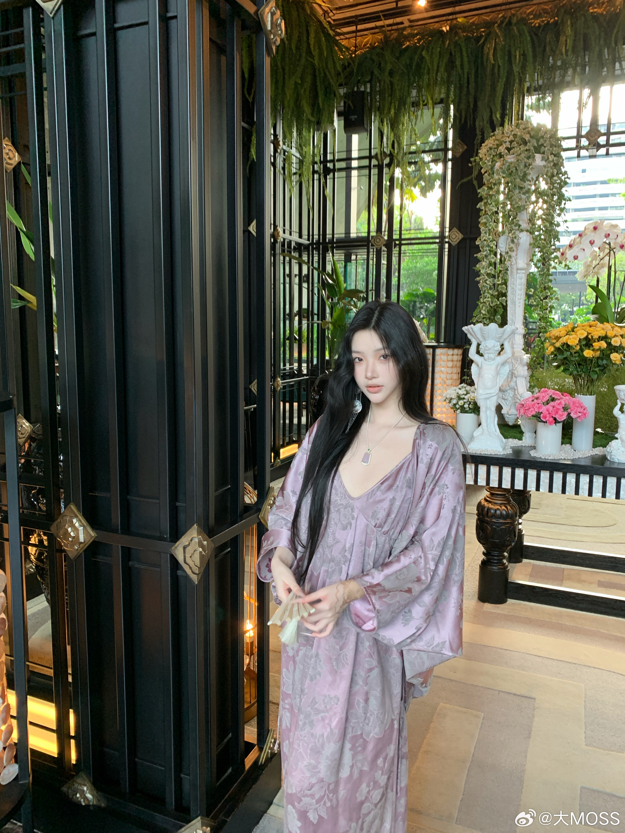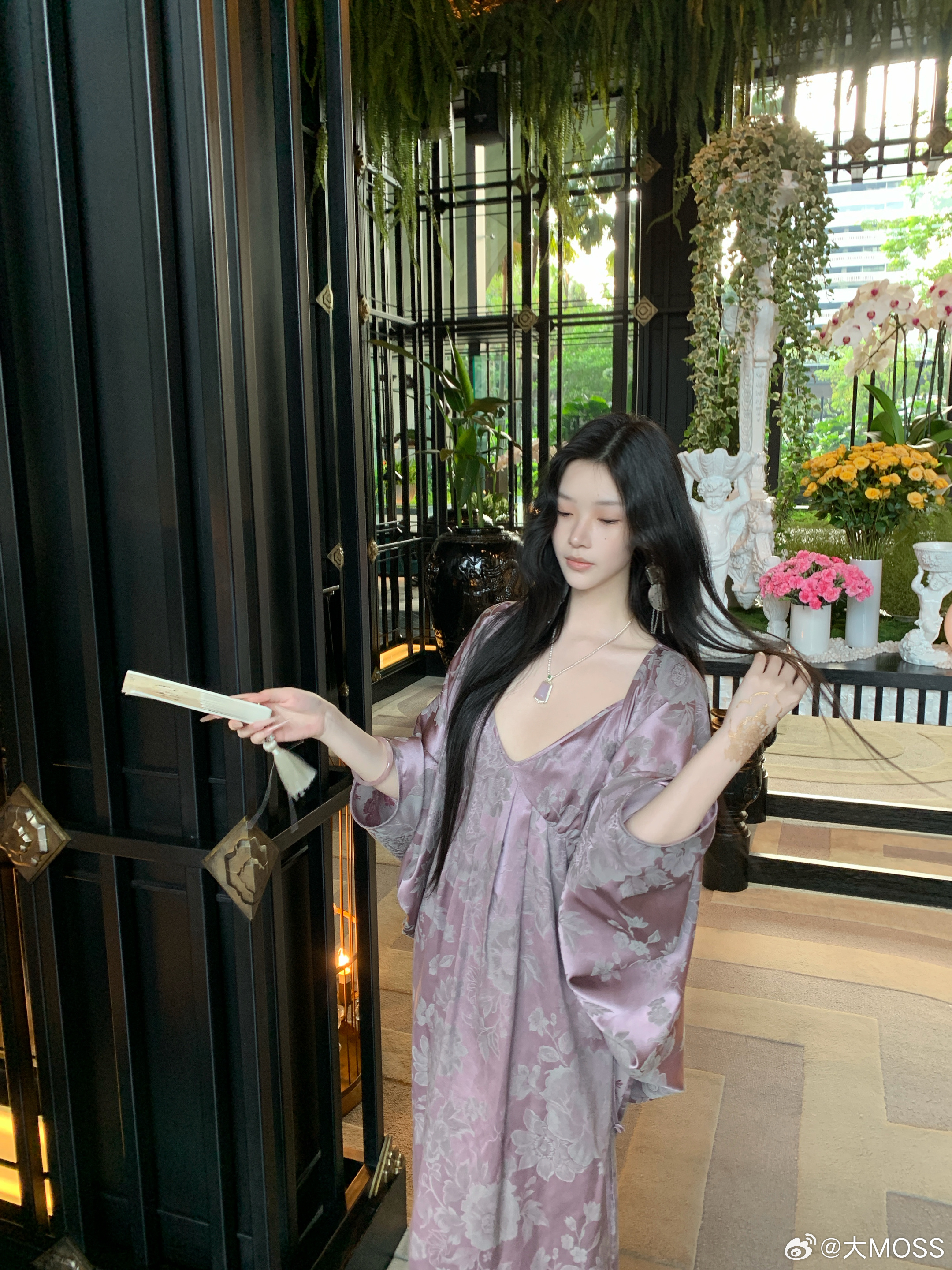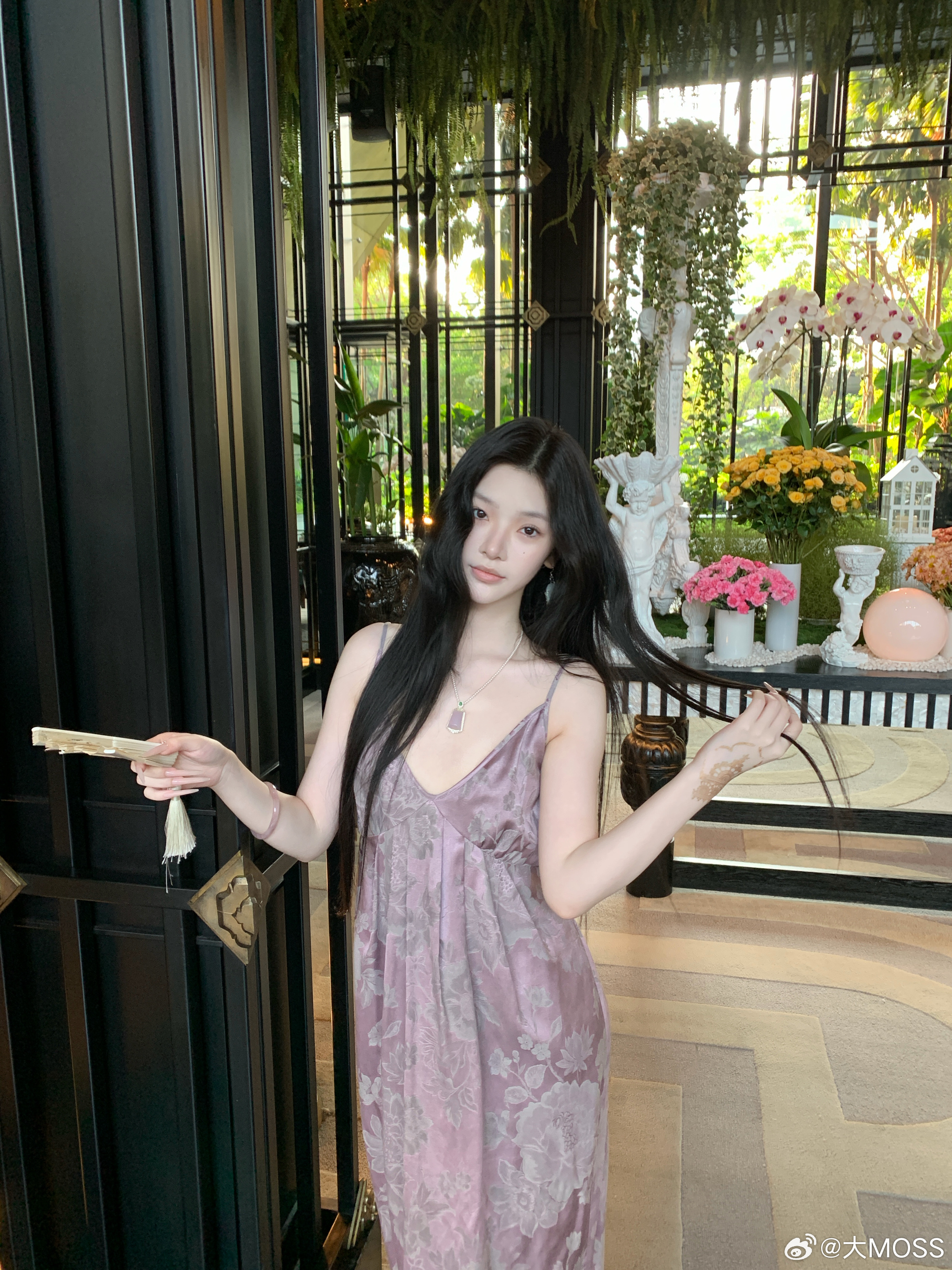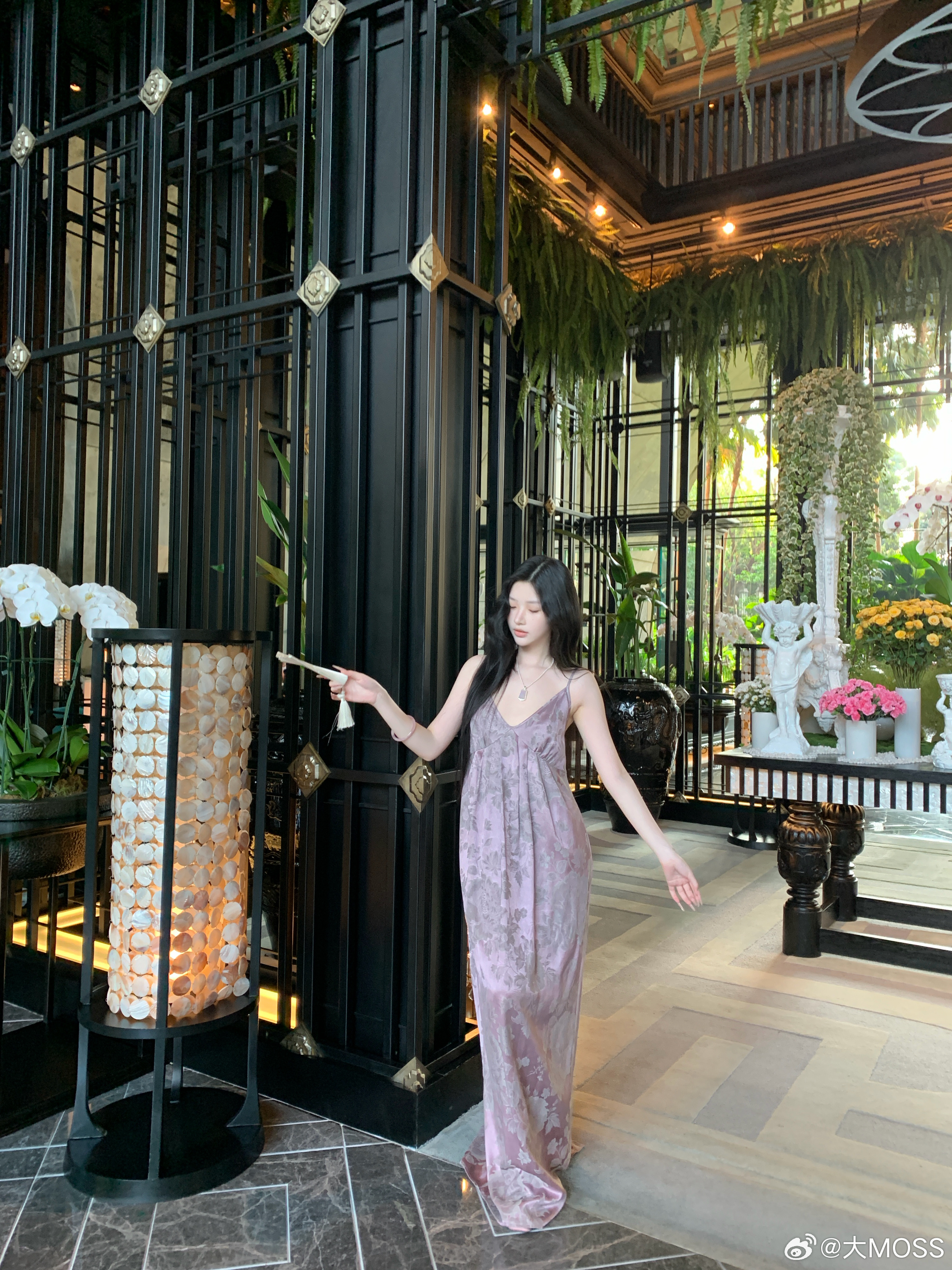 𝑴𝑶𝑺𝑺 𝟑.𝟏𝟓/𝟐𝟎:𝟎𝟎𝒑𝒎【桃绯烟罗】🪻🪻新中式人丝提花外套+吊带连衣裙套装采用宽松垂坠的版型,适配各种身形,能自然修饰肩线与腰腹线条。复古提花纹理与柔和的木槿紫底色相呼应,自带朦胧氛围感,日常单穿或作为外搭都能提升整体造型的层次感。吊带连衣裙剪裁贴合身形,吊带设计露出精致肩颈线条,裙摆垂坠顺滑,行走间尽显飘逸感。新中式穿搭
