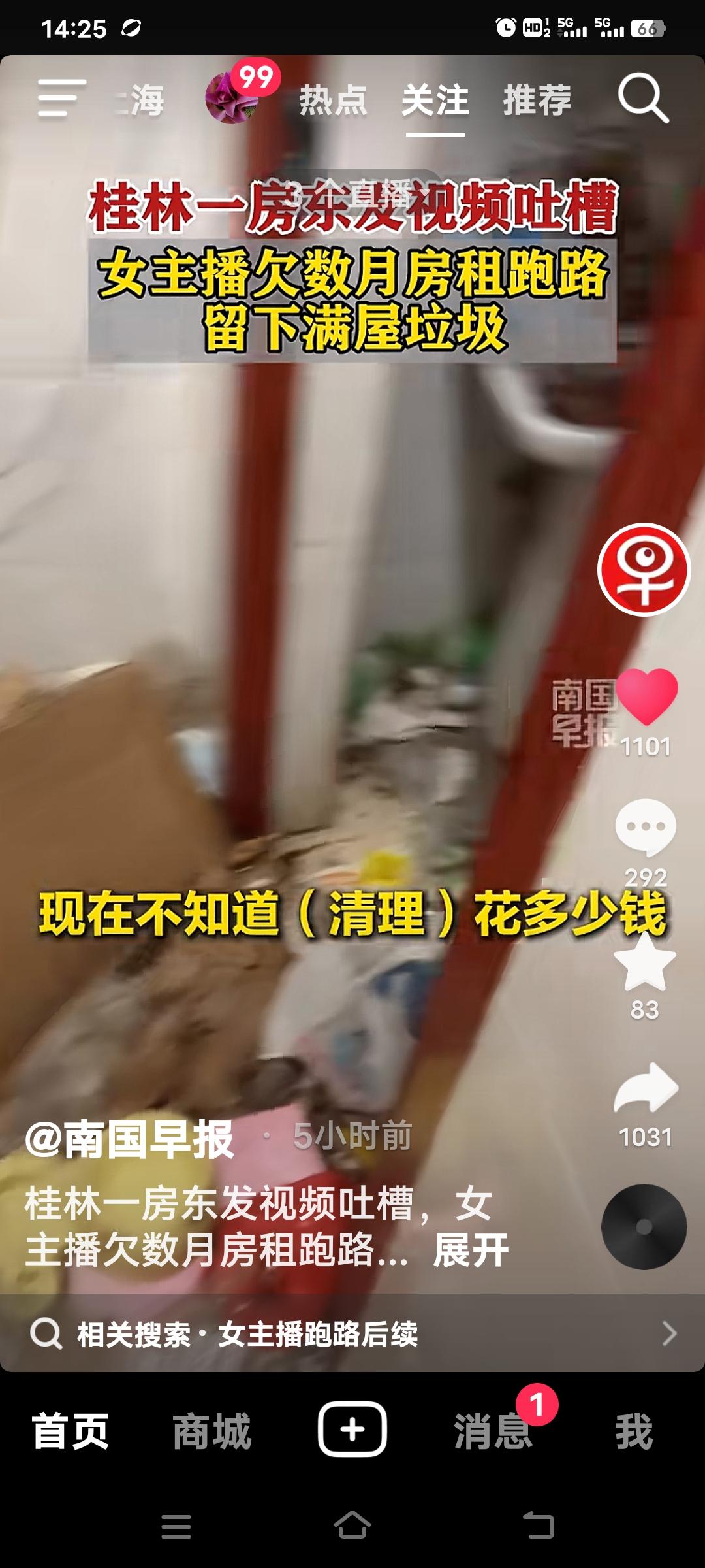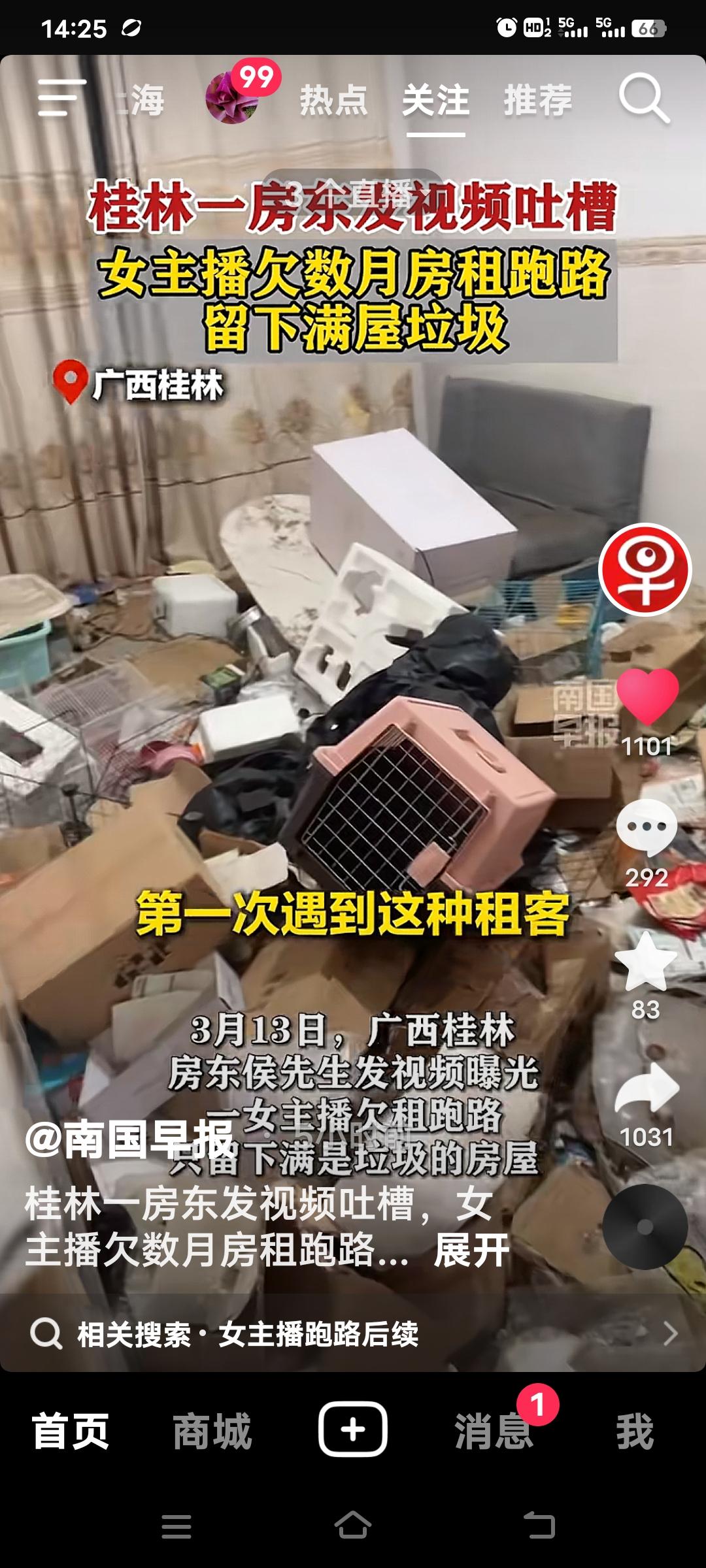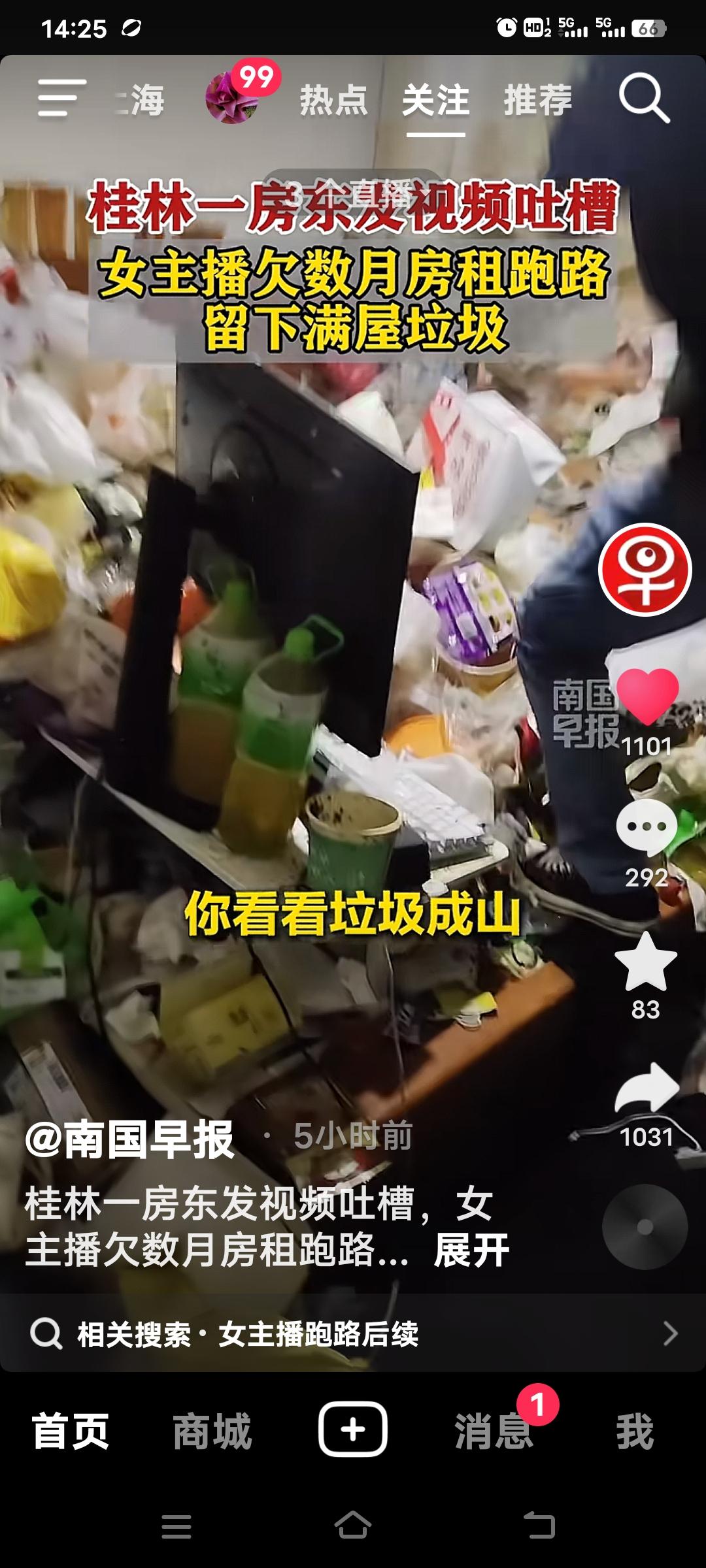 现在有些女主播真是太没素质了!广西桂林的侯先生发视频吐槽,有个百万粉丝的女网红,租他家房欠数月房租直接跑路了。开门一看,直接崩溃了,屋里全是垃圾,都堆成山了。清理好这些垃圾还不知道得花多少钱啊? 房东气的呦,找不到人就起诉,目前已报警!想想房东得多闹心啊,房子租出去,不仅没收到钱,还得收拾这烂摊子。这女主播只顾自己,一点责任心都没有。粉丝多又怎样,连基本的道德和契约精神都没有。 真希望有的所谓网红能有点公德心,别光想着自己,坏了自己的名声不说,还让房东糟心。 无素质租房 租房女人 网红退租