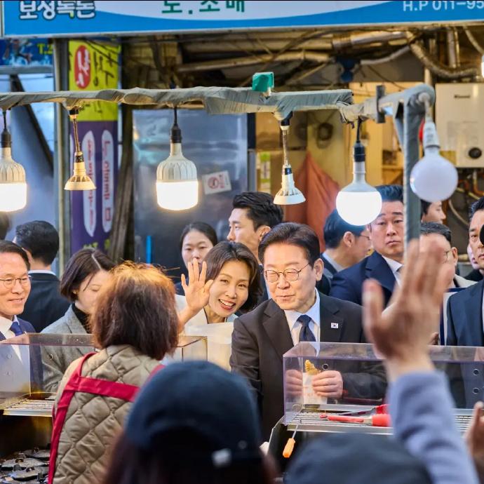 李在明逛街吃美食!韩国夫人看着老公满眼的爱意! 3月15日,李在明和夫人参加完活