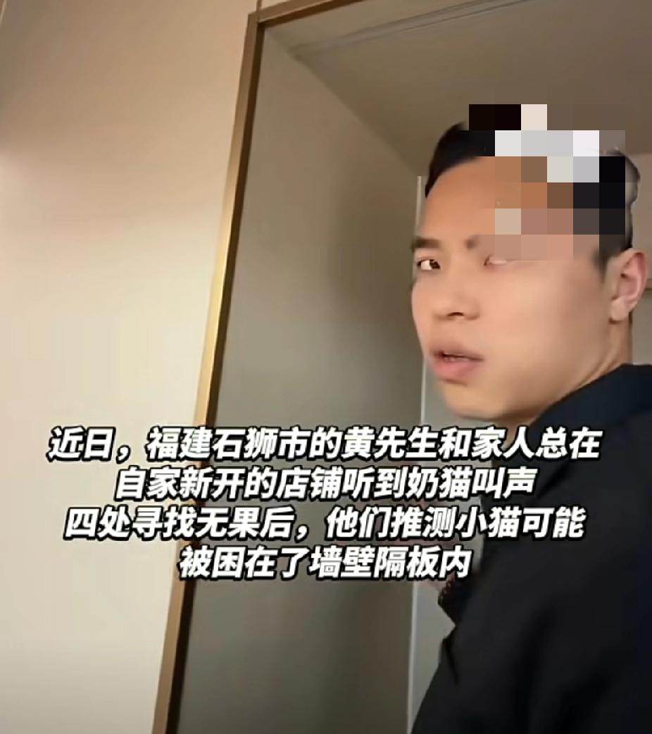 它终究遇上了心软的“神”!男子听到墙壁内传来奶猫叫声,四下寻找无果后果断拆掉新装修的墙壁找猫! (信息来源:锦观新闻) “都叫了两天了,不会是被困在墙壁隔板里了吧。”近日,福建石狮市的黄先生将耳朵贴在自家新店铺刚装修好的墙上,仔细的听着。 自从店铺墙壁都装修好,黄先生和家人就不断听到有小奶猫的叫声。黄先生和家人四处寻找,没有放过任何一个角落,仍没有找到小奶猫的踪迹! 于是黄先生开始怀疑小奶猫可能是被困在了墙壁的隔板里,听着小奶猫撕心裂肺的叫声,应该是饿坏了!黄先生当即决定拆开刚刚装修好的墙壁,只为给猫咪多一线生机! 黄先生说:“肯定也考虑到经济损失,但毕竟是一条生命,就没想那么多。” 幸运的是,砸破一个洞后,黄先生就明显感觉小奶猫的声音更加清晰了。透过洞口,黄先生看到了一只黑白相间的小猫咪,黄先生的心终于放了下来。 他们将板子拆掉,用扫帚和簸箕将小奶猫救了出来。想到小奶猫已经被困许久没有吃喝,黄先生马上给小猫准备了牛奶。 黄先生感觉这只小猫咪和自己太有缘分了,于是全网求网友们给小猫咪起一个名字。有网友说:“它困于高墙之内,又奇迹生还,不如叫高奇墙吧。”哈哈,网友这名字起的有理有据,真的很不错,就是有点太幽默了! 大家觉得这只幸运的小猫咪应该叫什么名字好呢?猫咪一刻 福建身边事