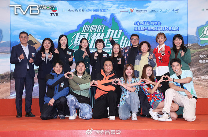 出席藝人、電視廣播有限公司製作部助理總監(非戲劇製作)姜偉、首席增長官(市場及營業)吳靜雯、宏利香港及澳門首席市場總監林沛、品牌營銷、客戶互動與夥伴拓展主管馬敏怡及澳洲旅遊局代表合照。