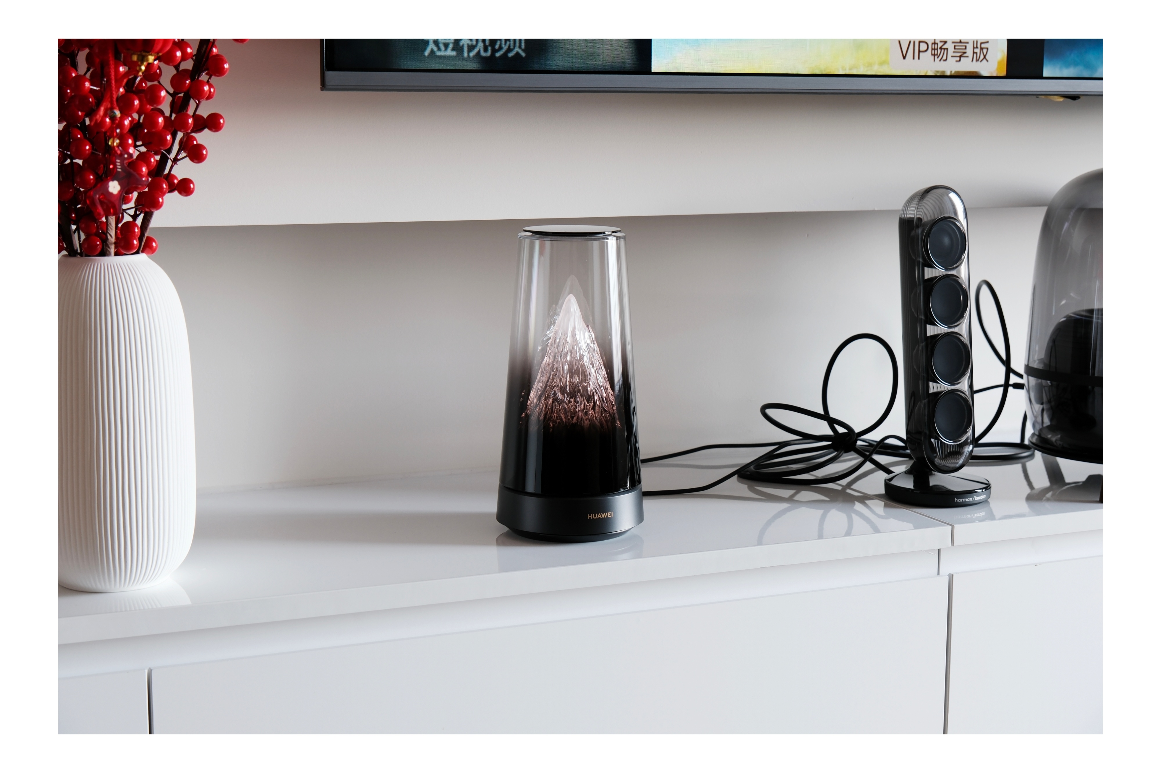 这套路由套装刚好在我装修房子的时候开始亮相的,子母路由。看到这个造型太绝了,一眼就爱上了。本来想装全屋路由,但是这个路由器颜值实在太顶了,于是我改了策略直接明装,打算把它摆在电视柜上。装完摆上,的确效果一绝~
