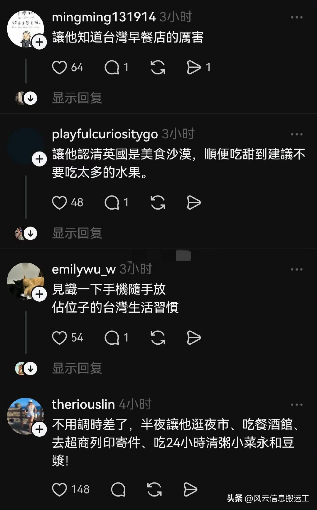 台湾省女孩交了个英国男朋友。 网上发帖请台湾省网友支支招,怎么样“让英国见识到