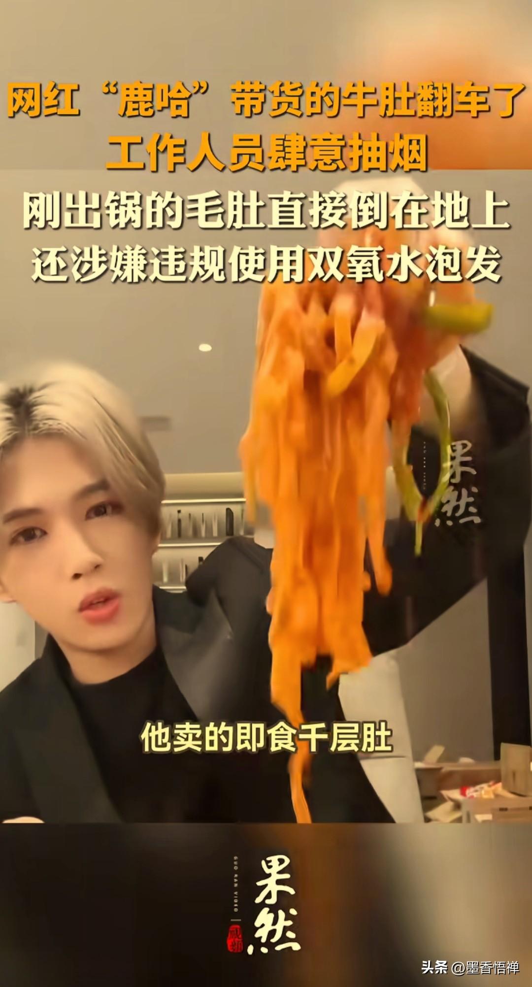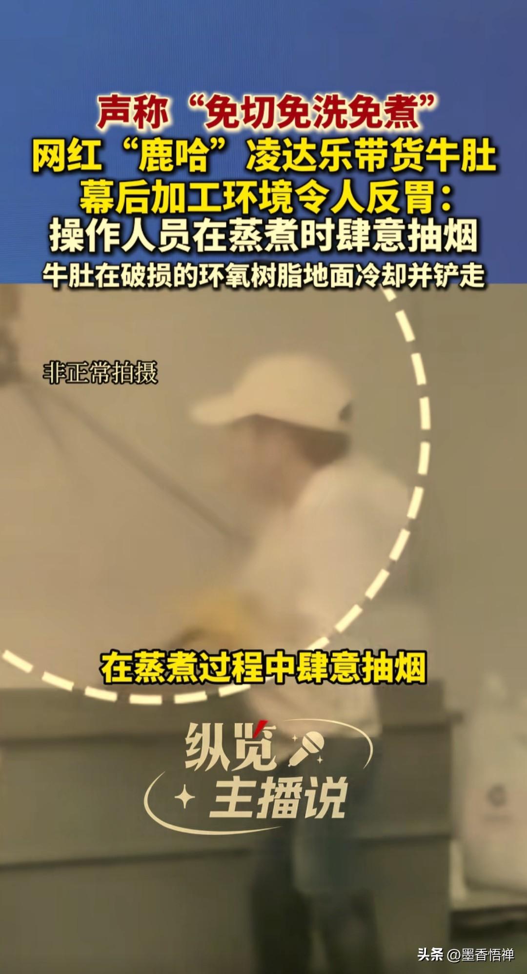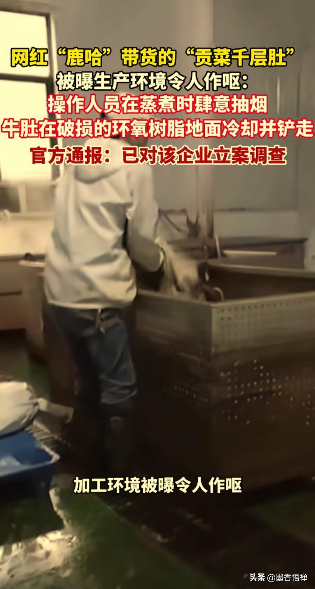 惊掉下巴!鹿哈带货3000万单千层肚曝惊天黑幕:车间抽烟、地上铲起装袋,巨额赔偿曝光 3·15曝光,据多家媒体报道:千万粉丝网红鹿哈(凌达乐) 就迎来“最大翻车”,其带货爆品“贡菜千层肚”被曝出触目惊心的生产黑幕! 这款号称“免切免洗免煮”的网红零食,单平台销量曾逼近3000万单,然而中国食品报的暗访实拍,却揭开了背后令人作呕的真相: 生产现场堪比“垃圾场”,实拍视频显示,涉事企业四川川牛福食品有限公司车间内存在严重违规: 1. 操作极不卫生:工作人员在蒸煮牛肚时公然抽烟,烟灰、烟蒂直接掉落至滚烫的食材上。 2. 严重交叉污染:刚出锅的高温牛肚直接倒在破损、脏污、积水满地的环氧树脂地面上冷却,随后被工人像铲垃圾一样铲起装袋。 3. 违规漂白:泡发环节涉嫌超范围使用双氧水进行漂白,严重违反食品安全法规。 这与直播间“干净卫生、开袋即食”的宣传形成了巨大反差! 事件曝光后,四川南充嘉陵区市场监督管理局连夜出击,迅速采取行动: 1. 对涉事企业立案调查,并责令立即停业整顿。 2. 封存全部原料与成品,当场抽样送检。 3. 后续将依法从严查处,并及时公布调查结果。 算笔账:假一赔十或赔三,得赔多少? 鹿哈团队已下架涉事商品并更换厂家,但面对近3000万单的销量,赔偿金额成了热议焦点: 按单销量约3000万单、客单价约9元计算: 若按假一赔十,总金额高达89.7亿元! 即便按假一赔三,也需赔付26.9亿元。 这组惊人的数据,也再次敲响了网红带货的警钟。 食品安全无小事,网红带货不能只看流量,食品安全是底线!