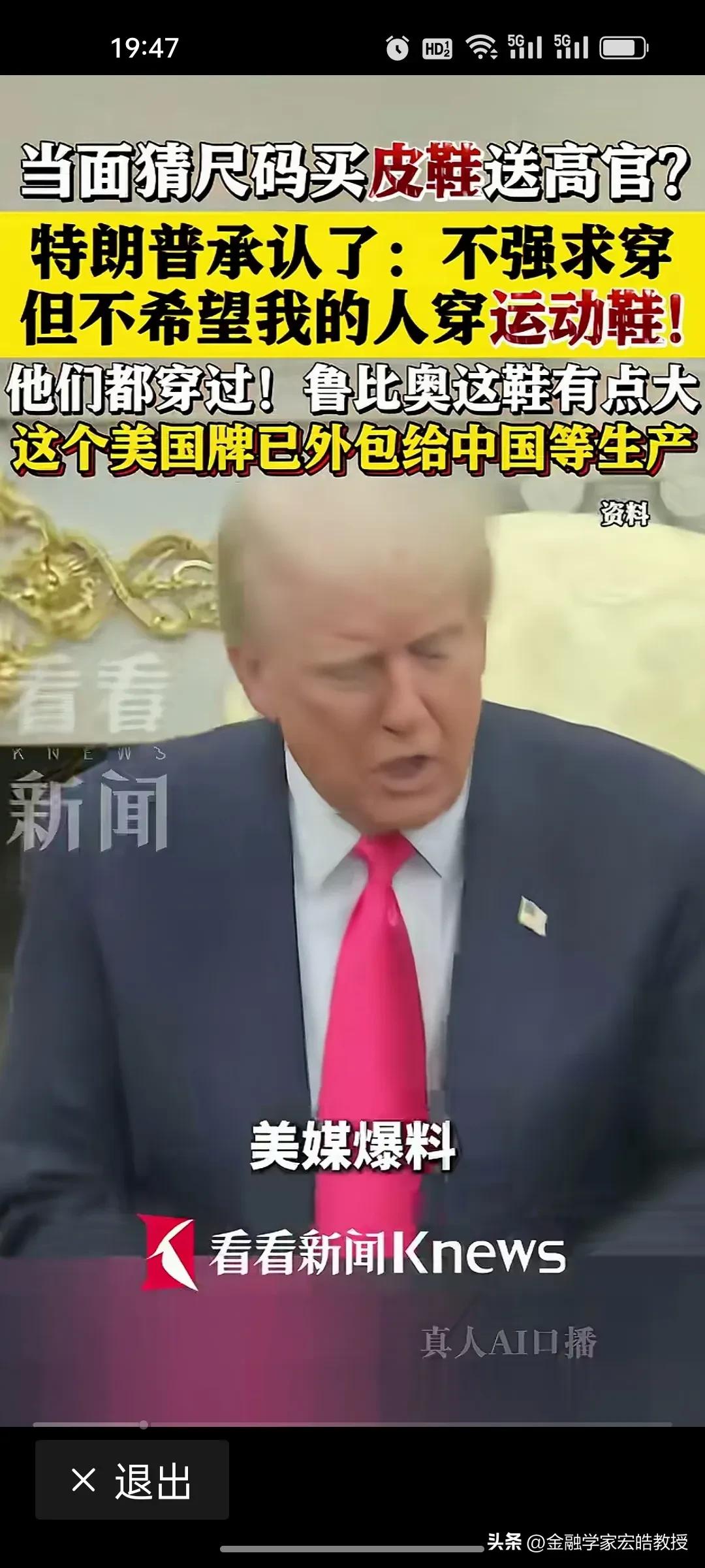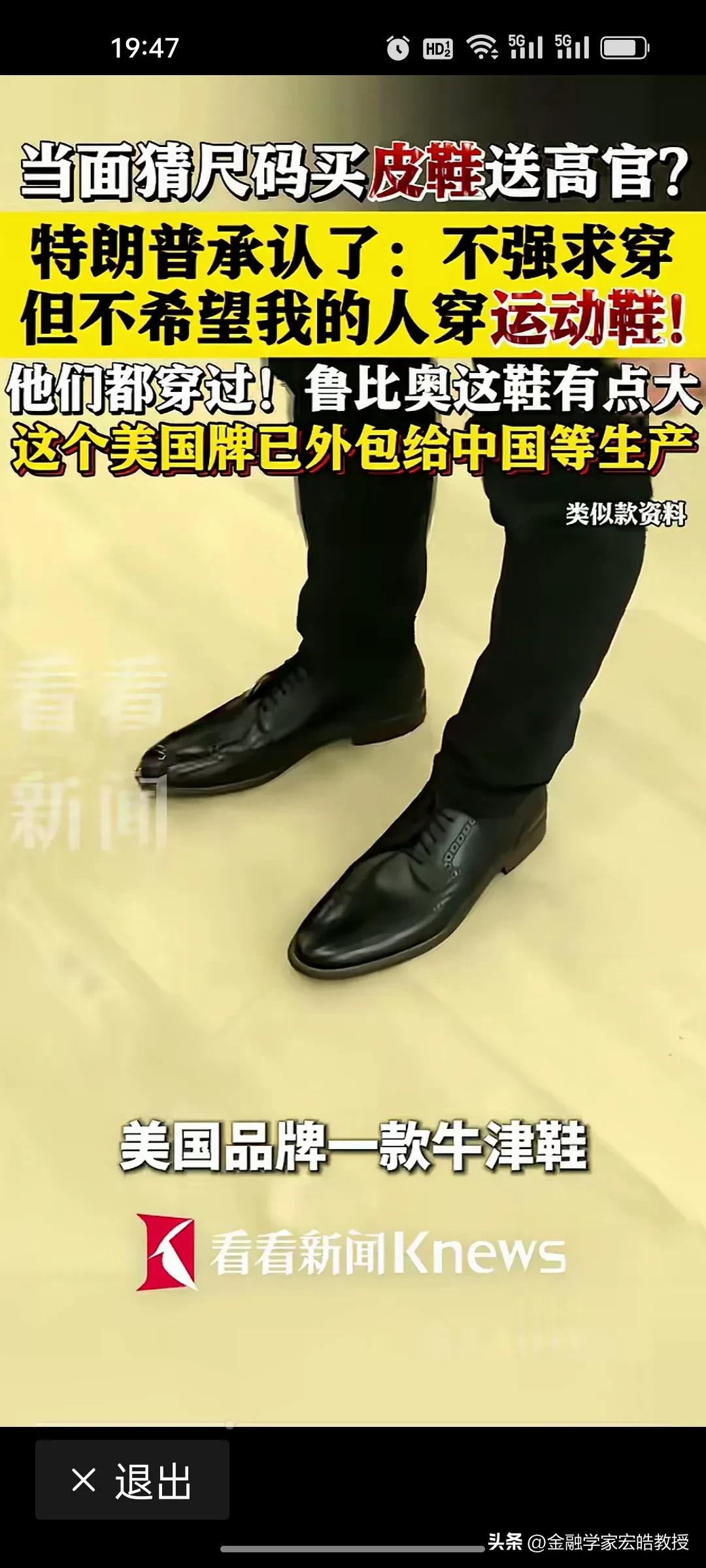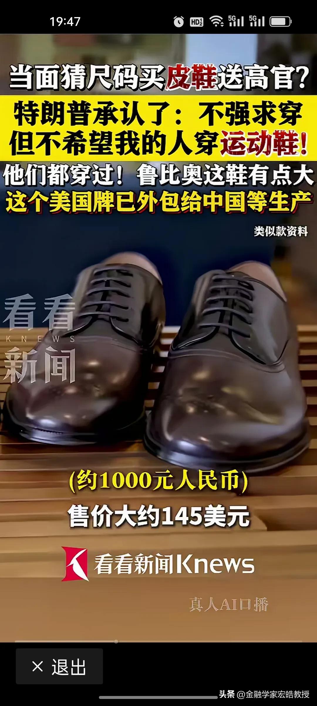 特朗普的“千元投名状”:一双不合脚的鞋,测的是忠诚底线 根据《看看新闻》报道,特朗普给好几位高官送皮鞋,不提前问他们鞋码,全靠猜,然后让助手取买。这绝非简单的送礼,而是一场精准的权力服从测试。可是这千元售价的“美国品牌”,实则产自中国、墨西哥,嘴上喊着制造业回流美国,手里的礼品却是全球代工。 鲁比奥穿大一号的鞋硬撑场面,不是不懂审美,而是不敢拒绝。这种“不合脚”的穿搭,就是赤裸裸的投名状——敢穿,便是认同一派;敢有怨言,即刻被边缘化。小小的鞋子,丈量的不是脚型,而是白宫里谁才是真正的“听话者”。
