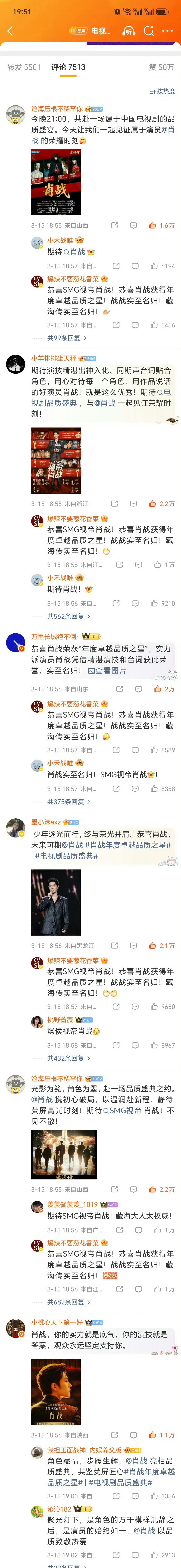 就说肖战得视帝影帝是民心所向众望所归,220万赞,110万,60万赞,50万赞
