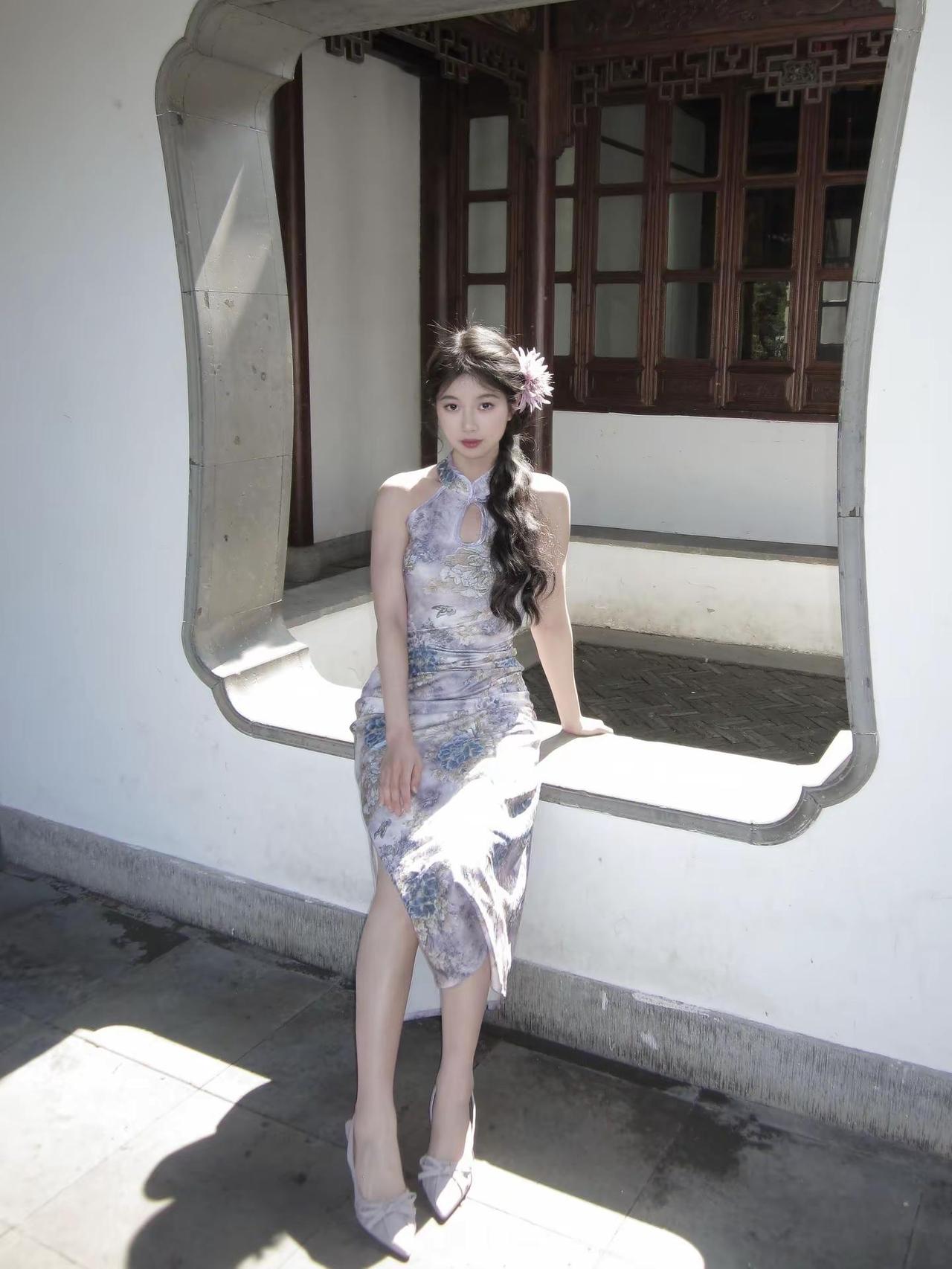 旗袍的美,在于分寸之间、开衩处若隐若现的矜持,腰身处恰到好处的勾勒。静立时如