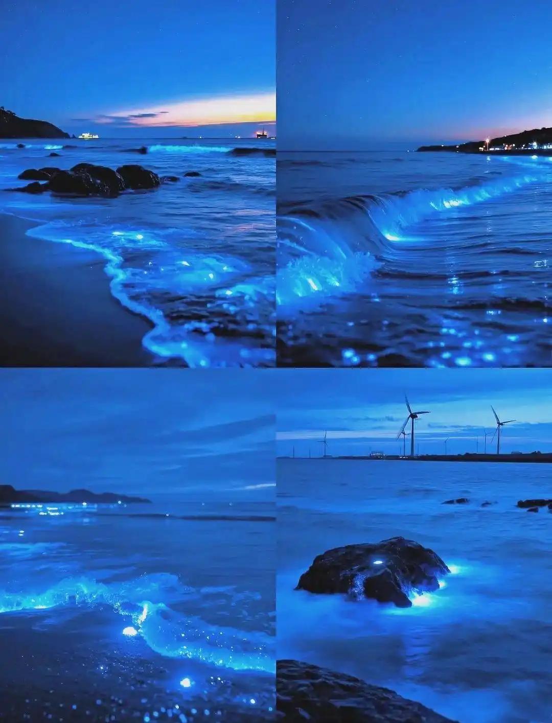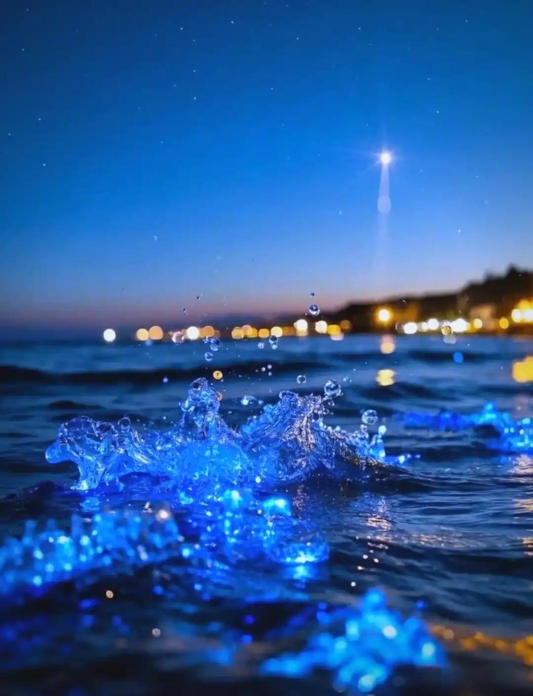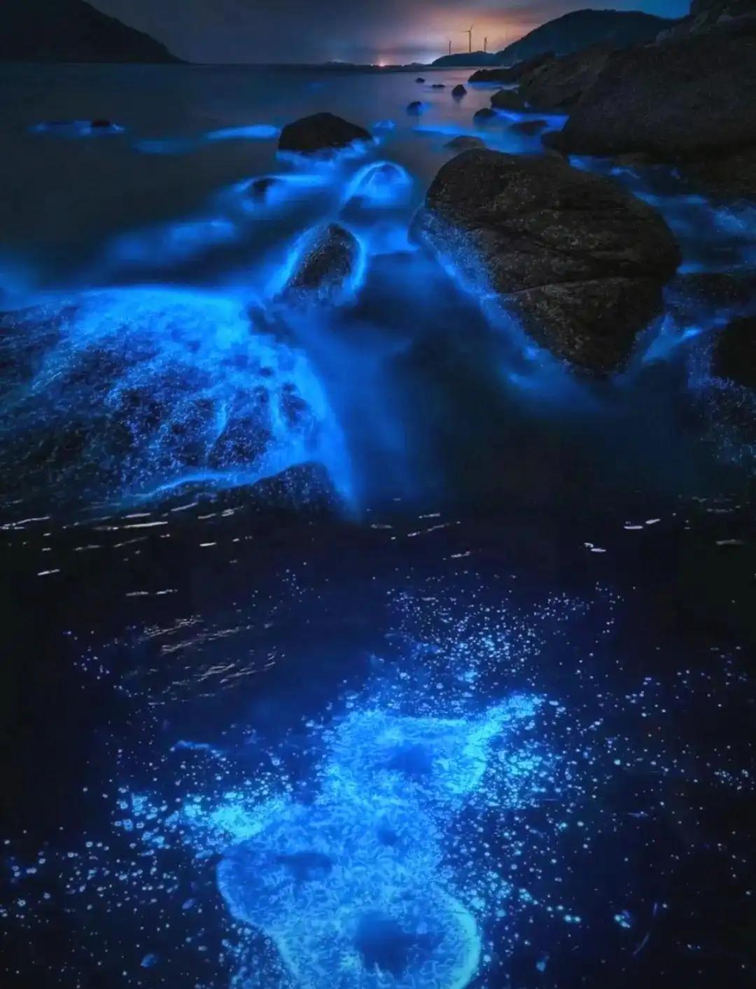 【福州“蓝眼泪”提早一个月出现】 由夜光藻等发光浮游生物形成的蓝色荧光现象,俗称蓝眼泪,今年较往年提早一个月出现。一般是通常4一6月为高发期。 近日,福州平潭猫头墘、白犬山等地已出现,可留意前去观赏。(图片来源网络) 蓝眼泪