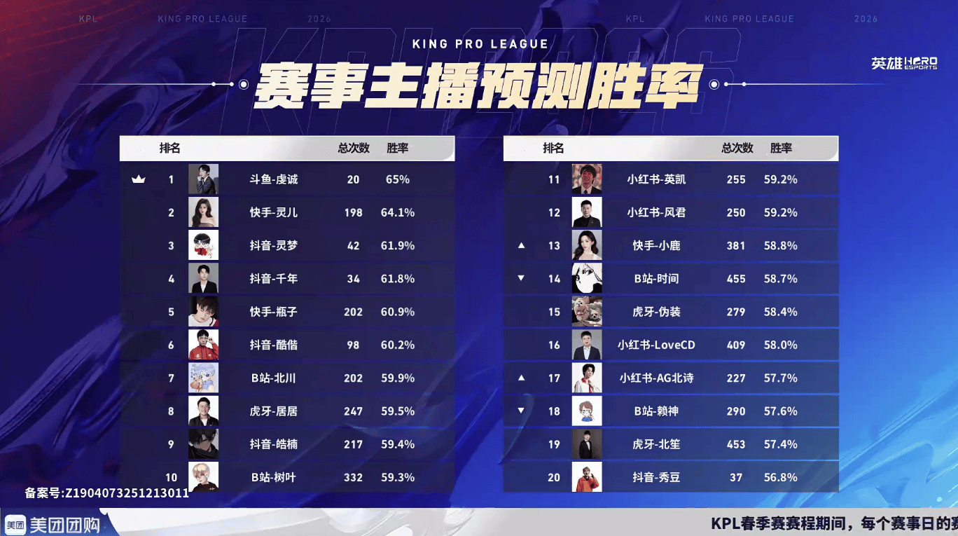 斗鱼-虔诚胜率65%,位于排行榜第一。