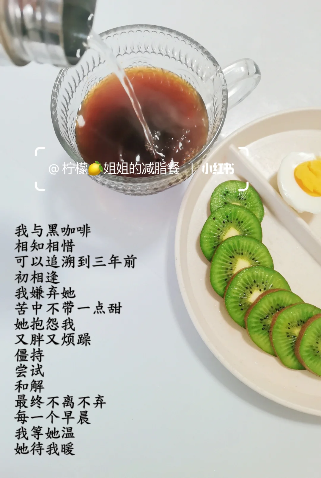 ✅今日早餐 黑咖啡☕️ 猕猴桃🥝 水煮蛋 红薯 🌈我与黑咖啡☕️故事 我与黑咖啡的相知相惜 可以追溯到三年前 初相逢 我嫌弃她苦中不带一点甜 她抱怨我又胖又烦躁 僵持 尝试 和解 最终不离不弃 每一个早晨 我等她温 她待我暖 🌈我与猕猴桃🥝 猕猴桃🥝的世界里有太多秘密和心事 怕热怕冷怕风雨 脆弱敏感又多疑 像极了我心里那个长不大的小女孩
