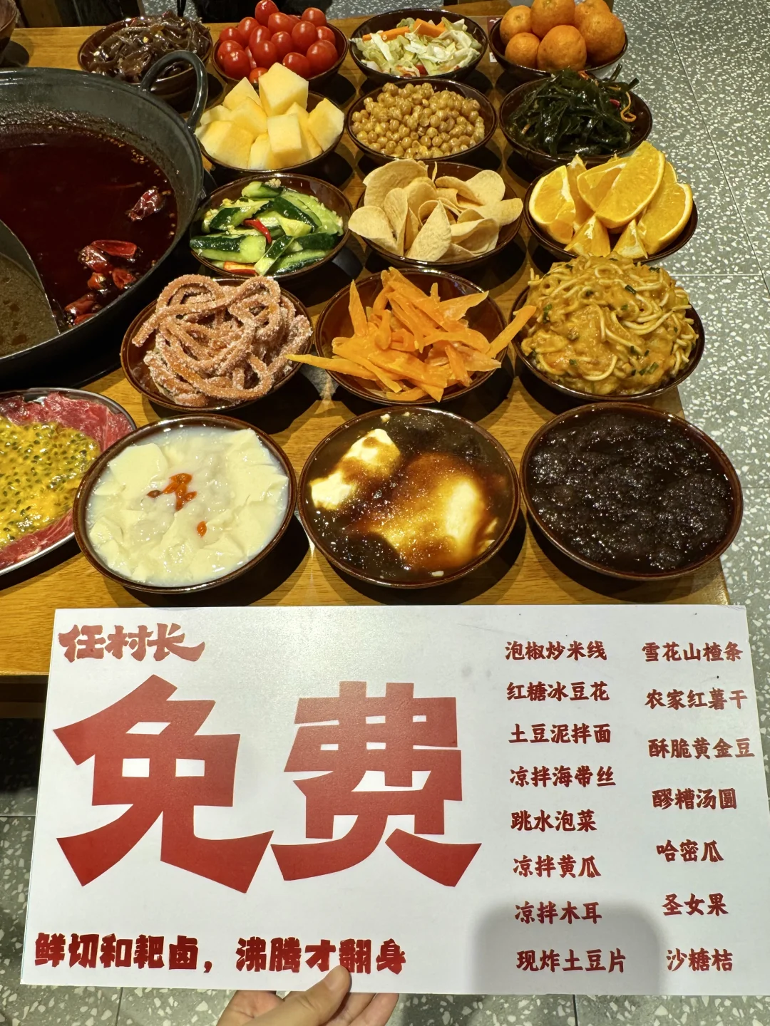 甜品🆓!小吃🆓!水果🆓!凉菜🆓!炒粉🆓!!! 🆓吃了一堆好吃的还不限量 素菜1r起,荤菜也就十几二十块 · 锅底也超香,可以煮各种卤味… 卤牛肉、卤鸡爪、卤肥肠、卤猪蹄… 菜品真的好多慢慢吃!好巴适!!! 深圳美食深圳火锅翻身美食宝安区美食任村长源头老火锅宝安火锅