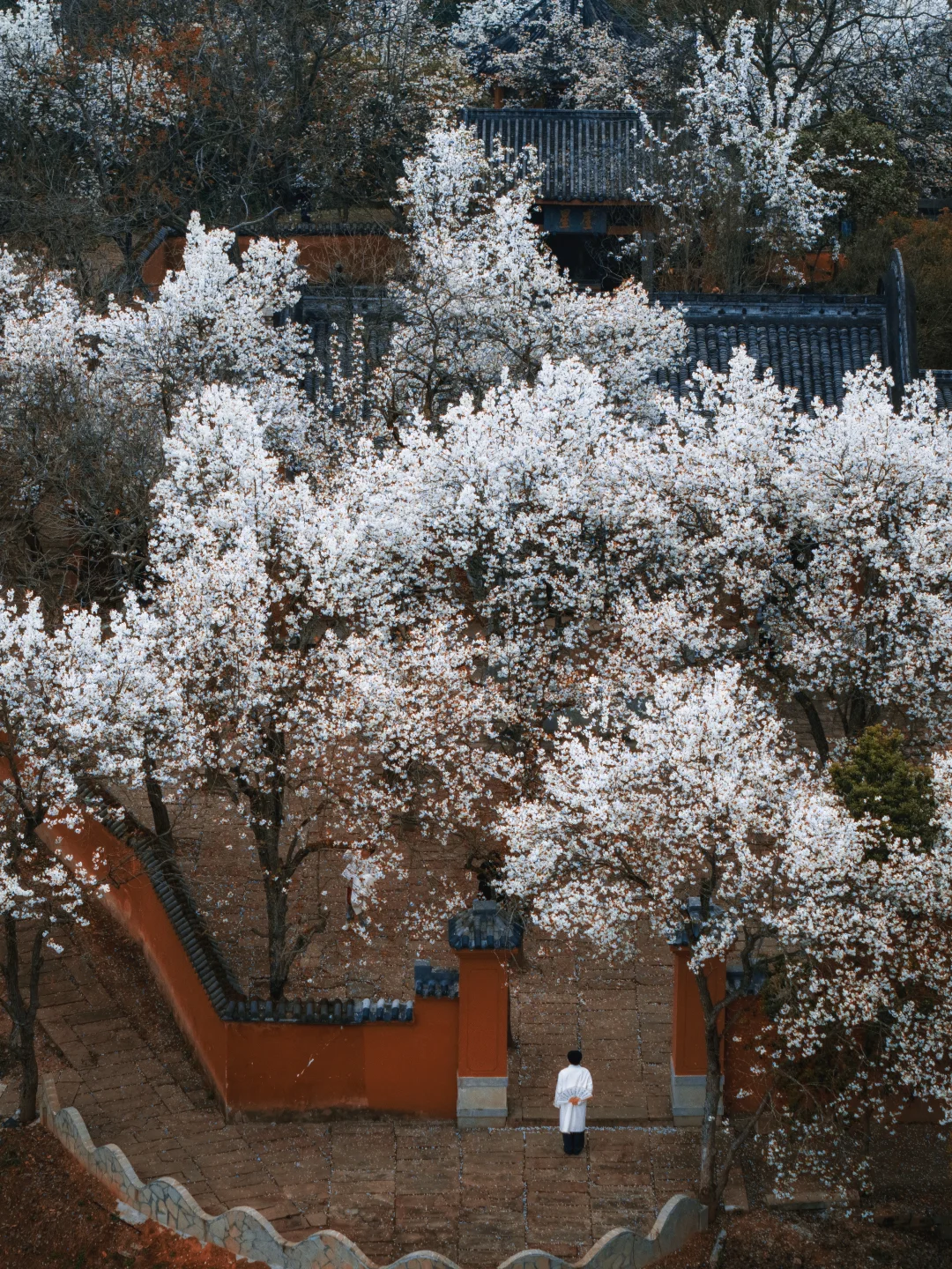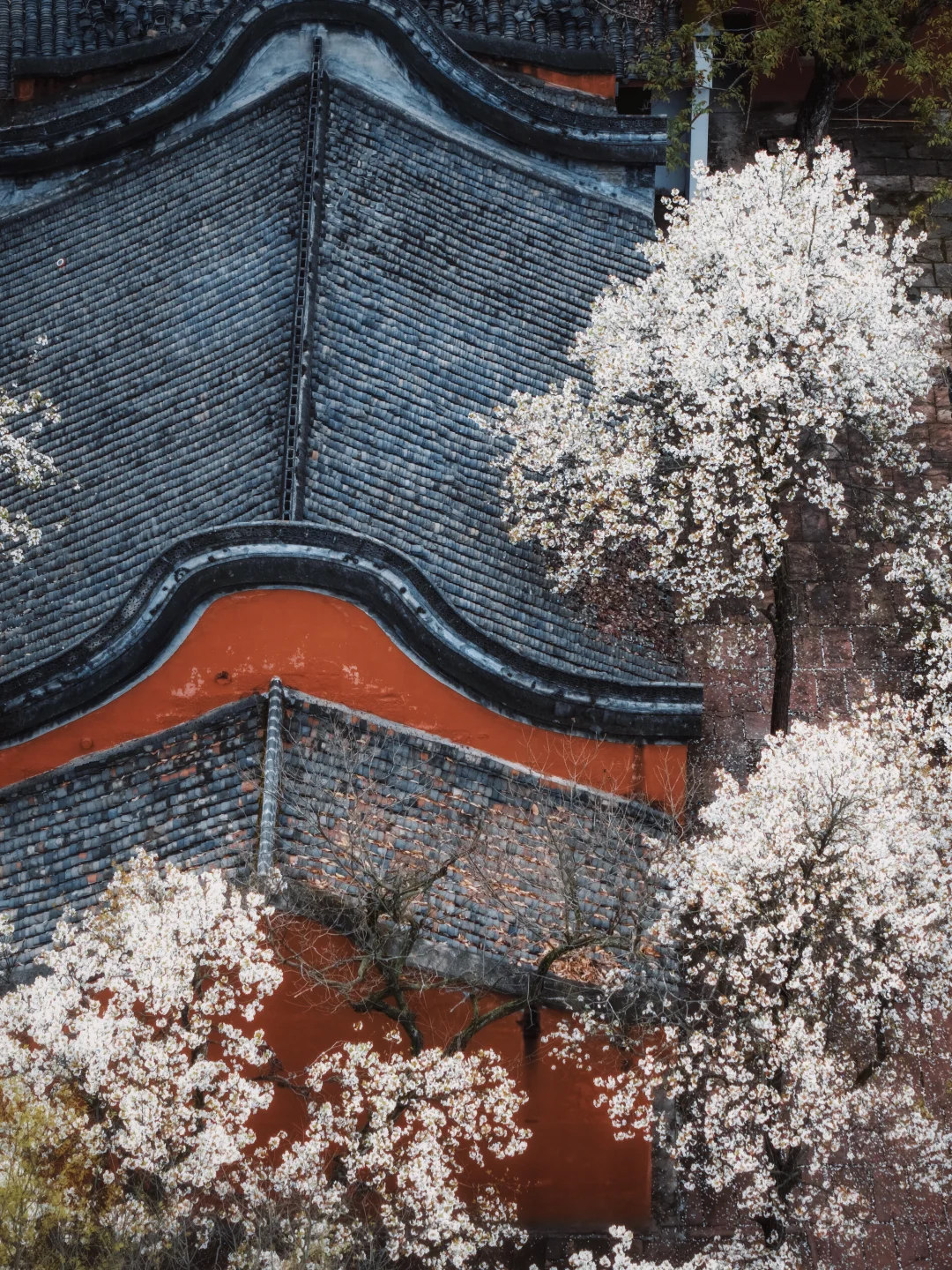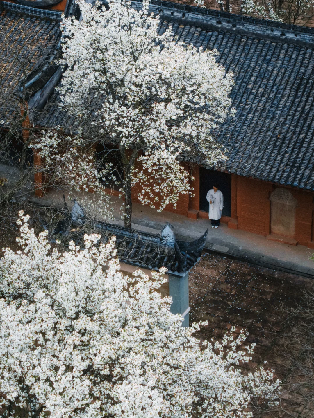1️⃣以前羡慕江浙沪才有这种古寺红墙配古树古花的场景,现在四川也有了。红墙搭配白色梨花超出片。