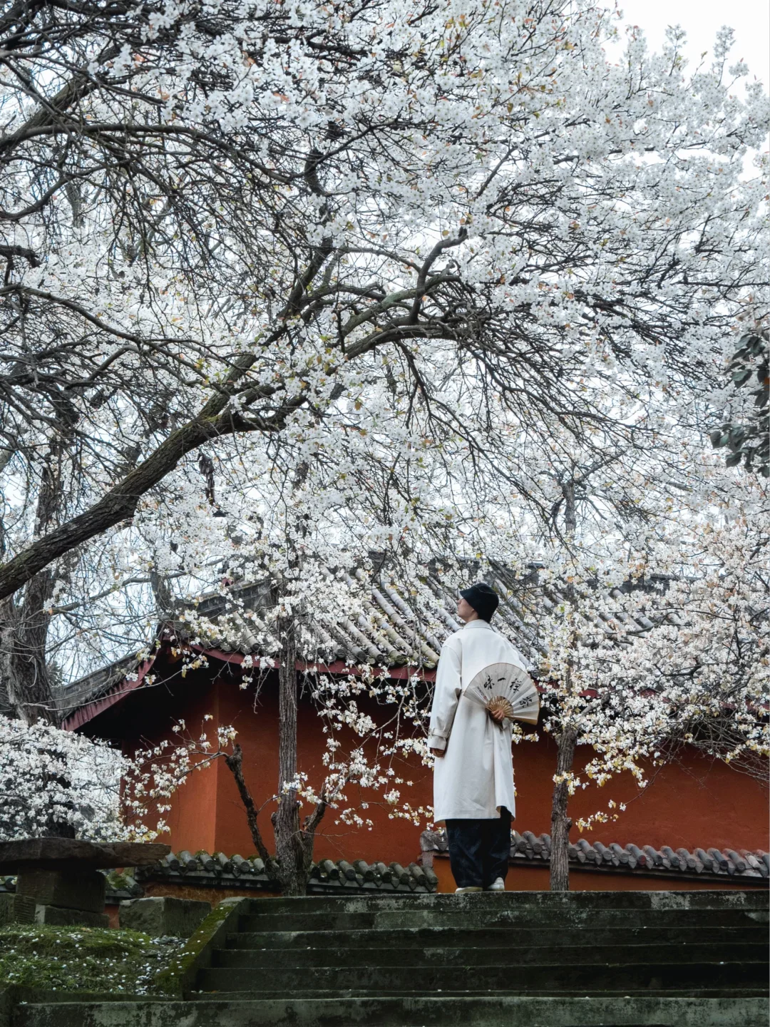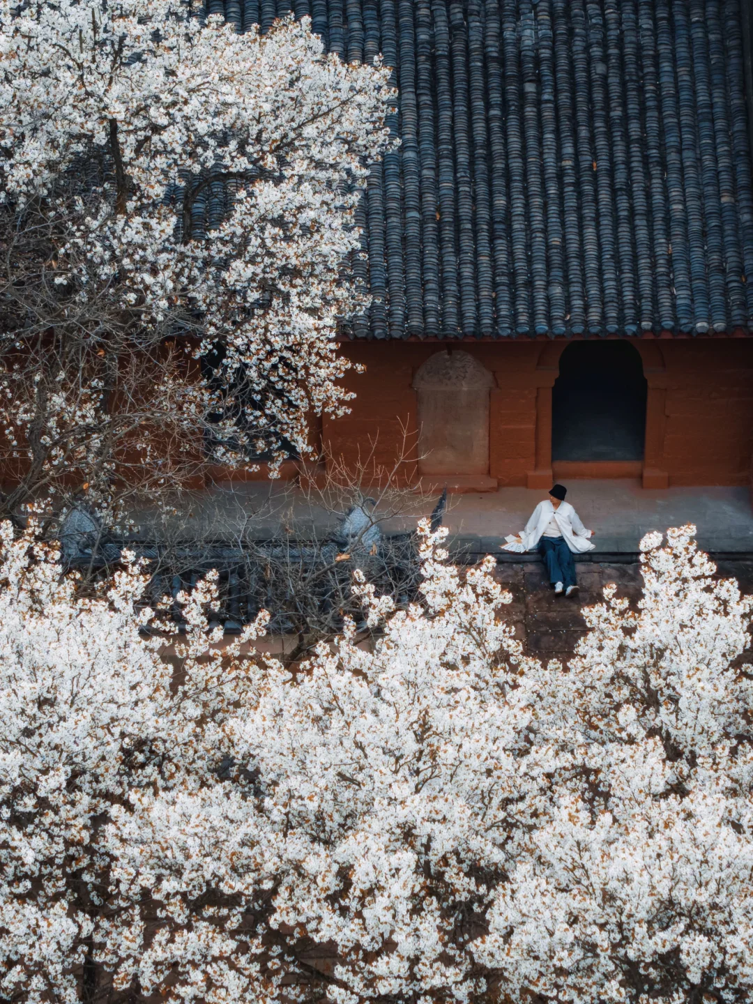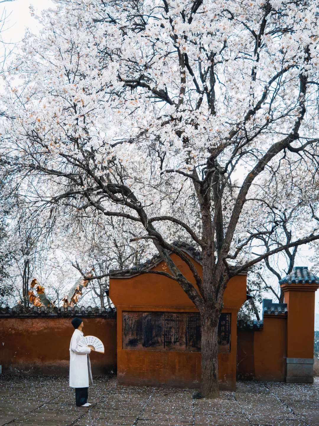 1️⃣以前羡慕江浙沪才有这种古寺红墙配古树古花的场景,现在四川也有了。红墙搭配白色梨花超出片。