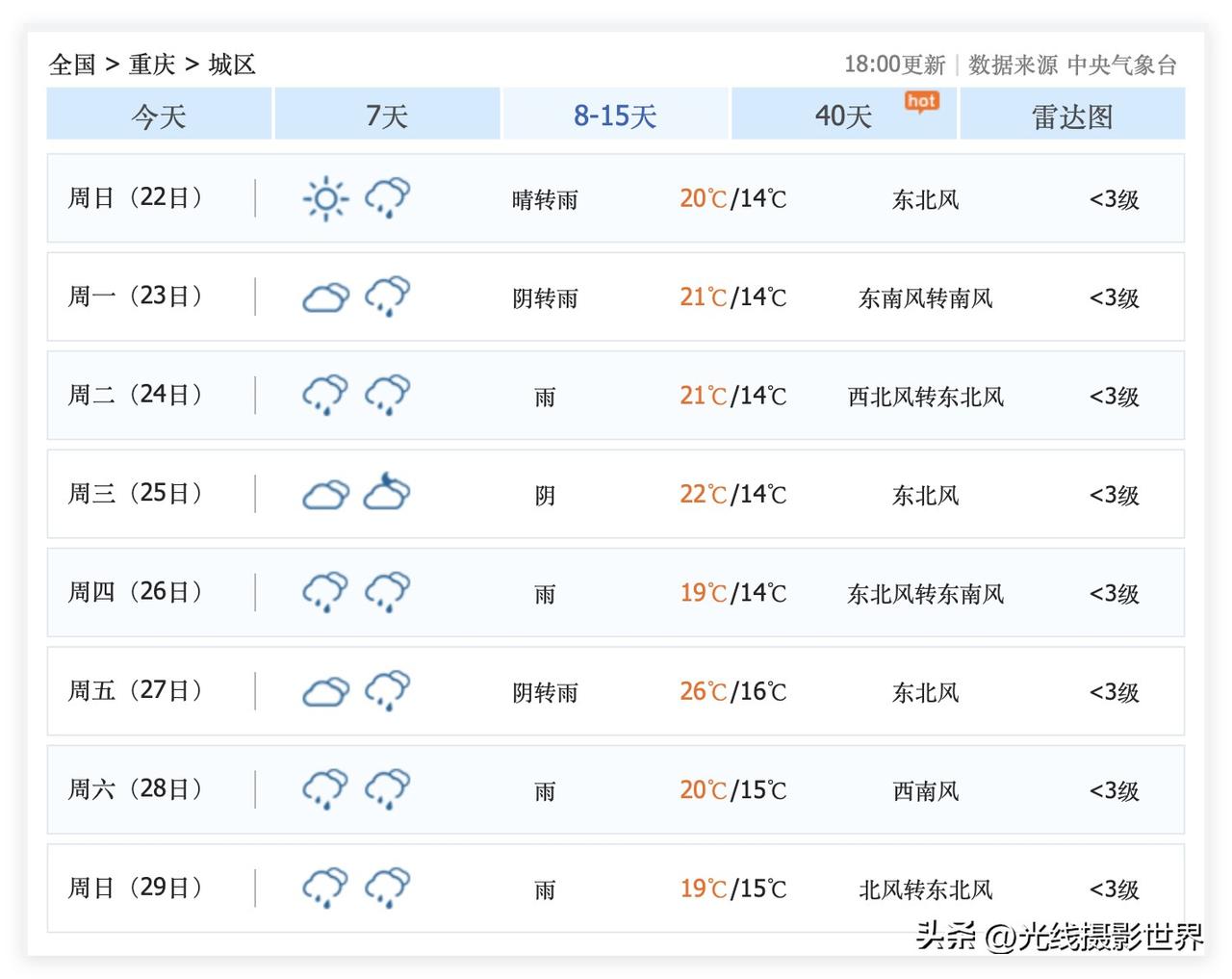 3月15日,重庆大降温,不少人都穿上了羽绒服,是真的穿上了羽绒服!好在,中央气象台的最新重庆天气预报显示,3月18日到21日,重庆主城区,回暖,出太阳……还好还好! 这周末的降雨降温之后,重庆桃花,重庆李花,重庆吉野樱花,就不值得去观赏了。 嗯,贵州平坝农场的樱花也是如此…… 不过,好在,3月18日到21日,重庆碧津公园的紫藤花,应该还是比较适合欣赏,这个公园的杜鹃花也还是可以的。 嗯,还有啥呢?! 贵州毕节百里杜鹃花,也要迎来盛花期啦!
